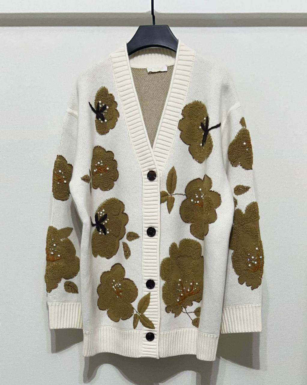 Кардиган Chloe LUX-112894 представляет собой элегантный предмет гардероба в стиле casual. Кардиган молочного цвета с объемными элементами в виде крупных цветов с жемчужными вставками. Он подойдет для повседневной носки, а также для создания более изысканных образов.