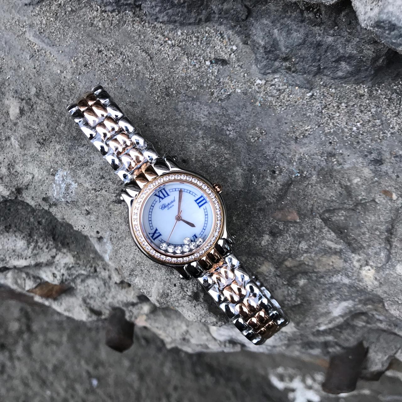 Chopard Часы женские LUX-12467 – это изысканный аксессуар, сочетающий в себе классический дизайн и роскошные детали. Белый циферблат с римскими цифрами и подвижными кристаллами, обрамленный дорожкой из сверкающих камней, придает часам неповторимый шарм. Комбинированный браслет из серебристого и розового металла подчеркивает элегантность модели, делая ее идеальным дополнением к любому образу, от делового до вечернего.