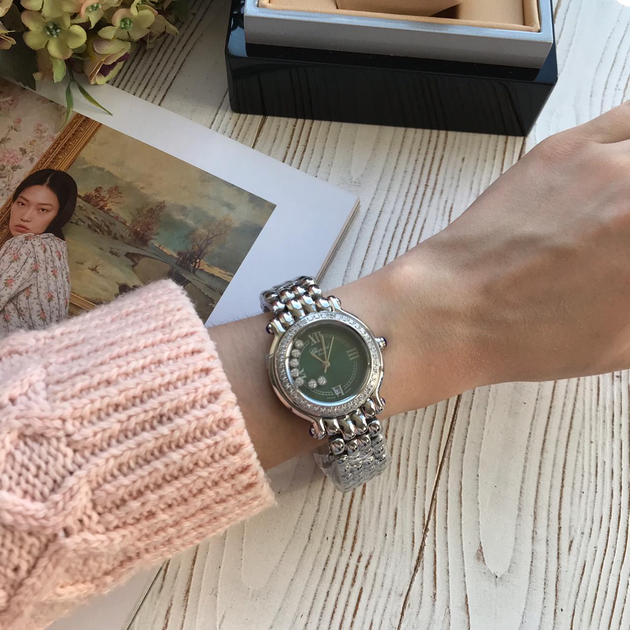 Часы женские Chopard LUX-16560 – это изысканный аксессуар, сочетающий в себе элегантность и роскошь. Эта модель от Chopard выполнена в классическом стиле, что делает ее универсальным дополнением к любому образу. Яркий зеленый циферблат, украшенный бриллиантами и римскими цифрами, придает часам особое очарование. Металлический браслет и корпус подчеркивают статусность изделия.