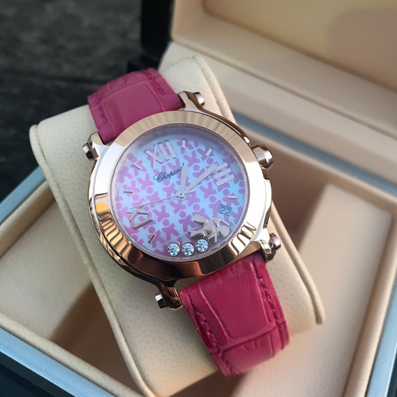 Изящные женские часы Chopard LUX-21721 — это воплощение элегантности и роскоши. Часы выполнены в классическом круглом корпусе с римскими цифрами на циферблате, украшенном мерцающими бриллиантами. Яркий розовый ремешок из кожи придает модели особый шарм и женственность, делая ее идеальным аксессуаром для любого случая.
