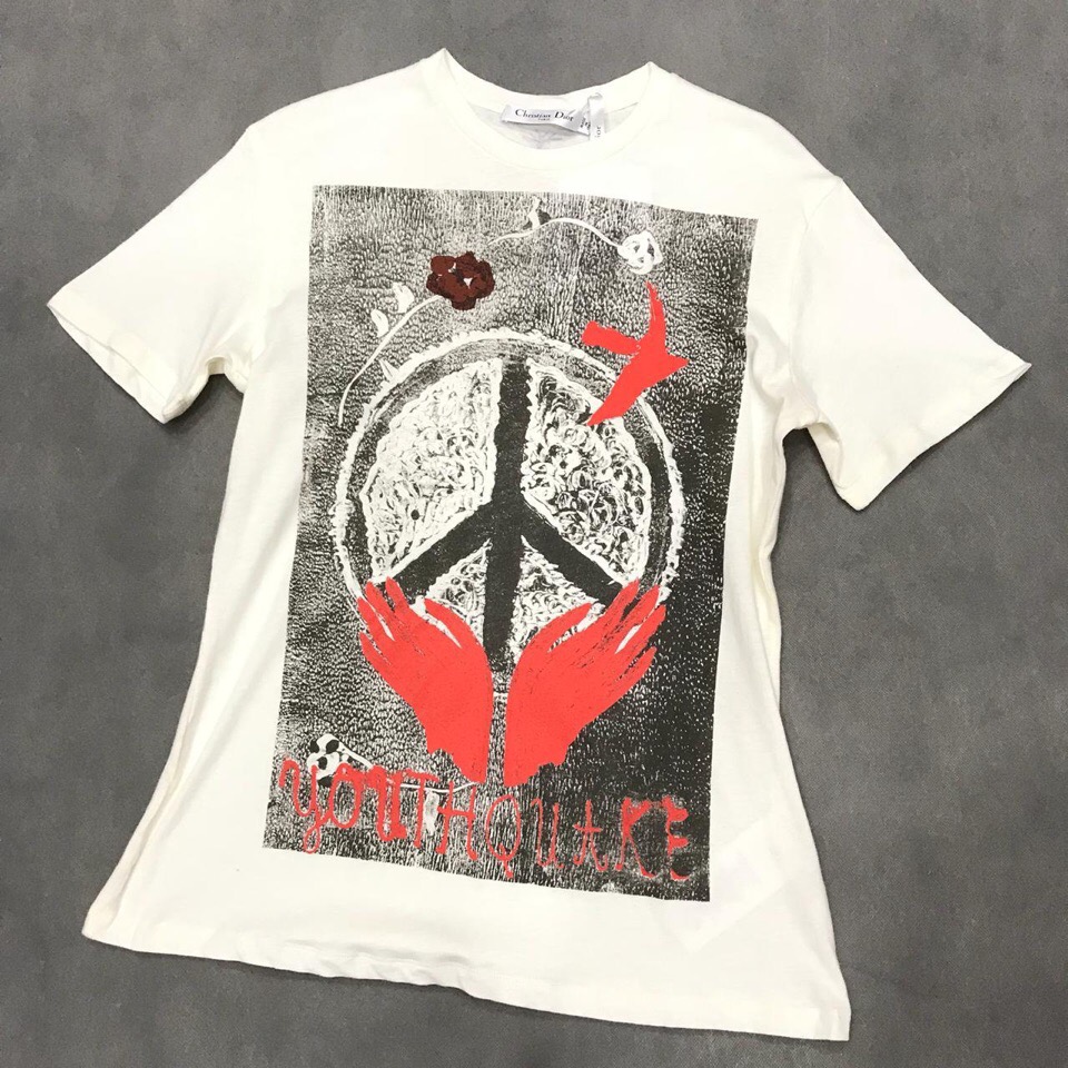 Футболка Christian Dior ОДЖ-1013 – это стильная и оригинальная вещь, которая станет ярким акцентом вашего образа. Дизайн футболки украшен узнаваемым принтом с символом мира, красными руками и надписью, что придает ей индивидуальность и запоминаемость. Отличный выбор для тех, кто ценит комфорт и эксклюзивность.