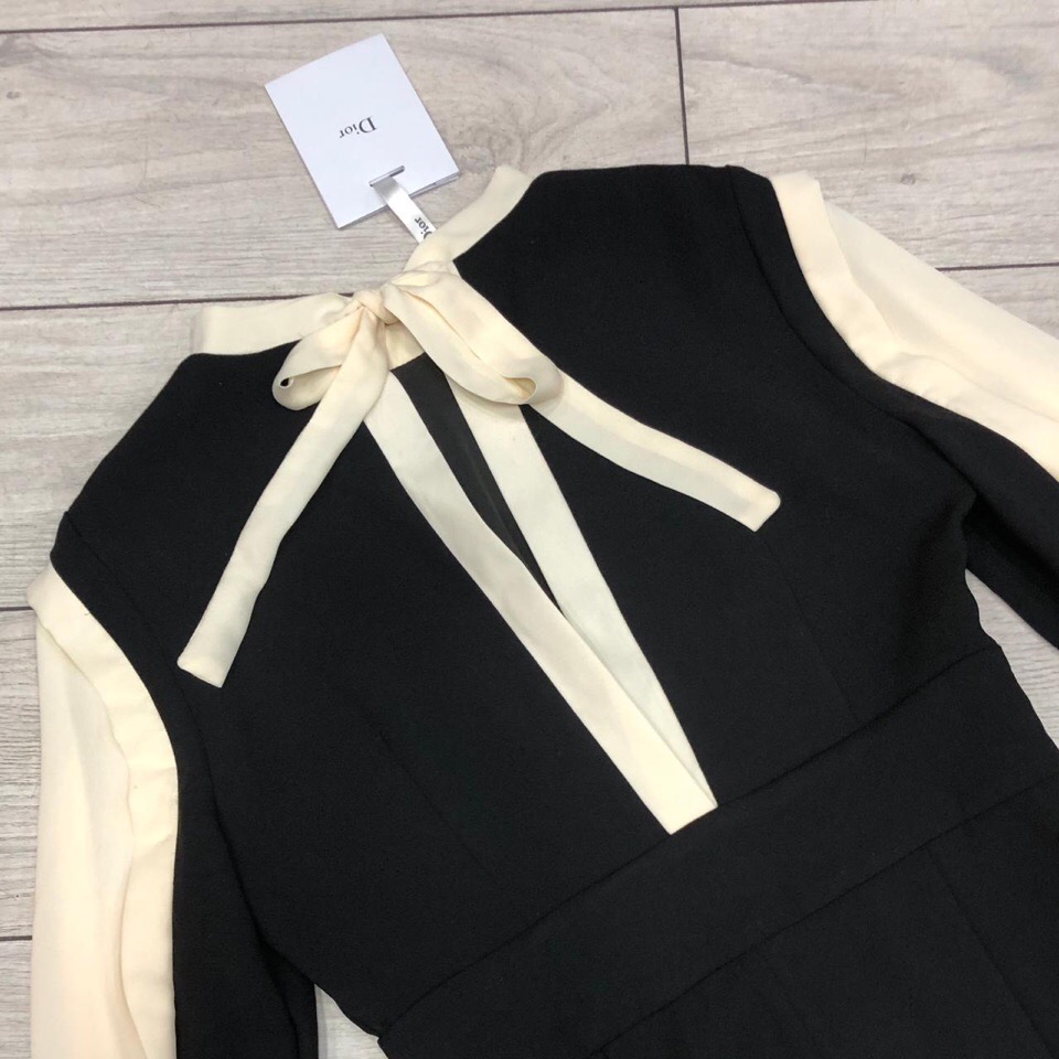 Платье Christian Dior ОДЖ-1117 представляет собой элегантное творение, сочетающее классический черный цвет с контрастными кремовыми рукавами. Модель отличается лаконичным дизайном, подчеркивающим женственный силуэт, и вниманием к деталям, таким как изящные пуговицы на манжетах. Это платье идеально подходит для создания утонченных образов.