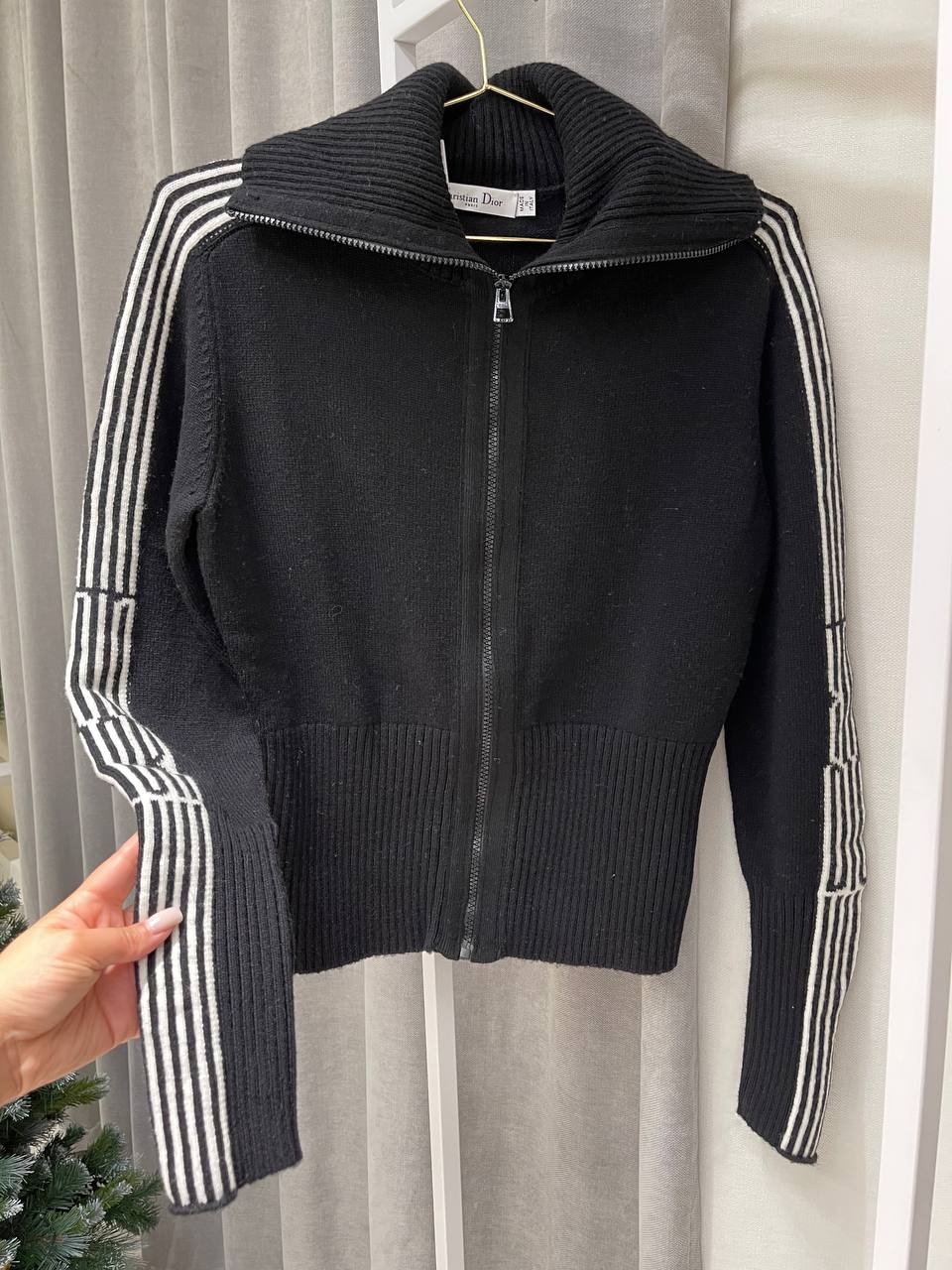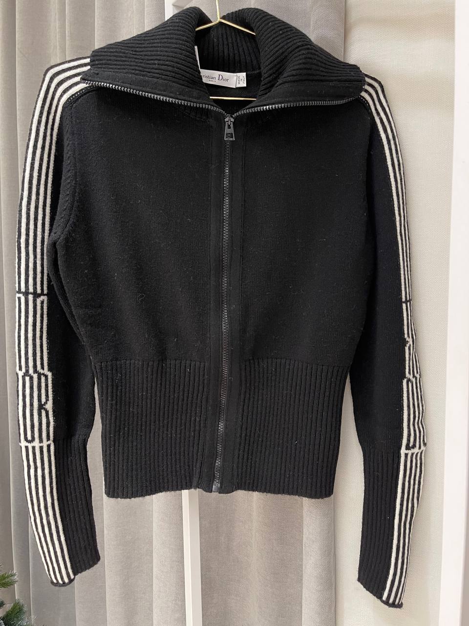 Этот бомбер от Christian Dior сочетает в себе спортивный стиль и элегантность. Модель с длинными рукавами, застежкой-молнией и высоким воротником станет отличным дополнением к вашему гардеробу.