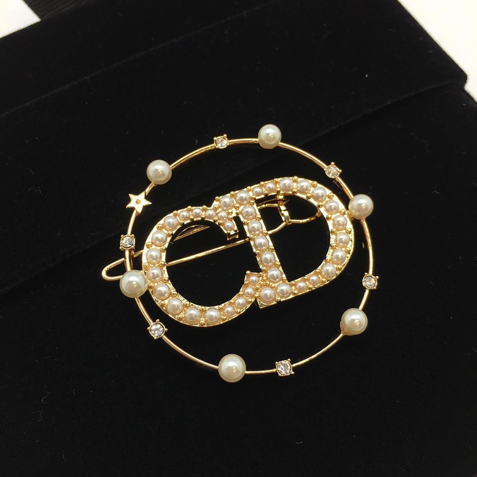 Брошь Christian Dior LUX-15374 представляет собой элегантное украшение в классическом стиле, выполненное в золотистом цвете. Эта изысканная брошь с узнаваемым логотипом бренда, инкрустированным жемчугом и кристаллами, добавит утонченности любому образу.