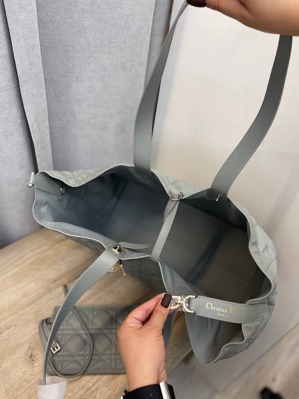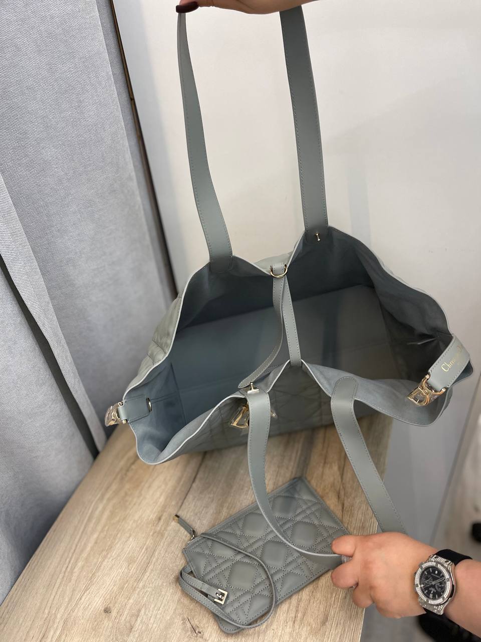Сумка женская 37 см Christian Dior LUX-97219 – это стильный аксессуар, который подчеркнет индивидуальность и дополнит любой образ. Сумка выполнена в стеганом дизайне серого цвета, что придает ей элегантность и утонченность. Она идеально подходит для повседневного использования, а также для особых случаев.