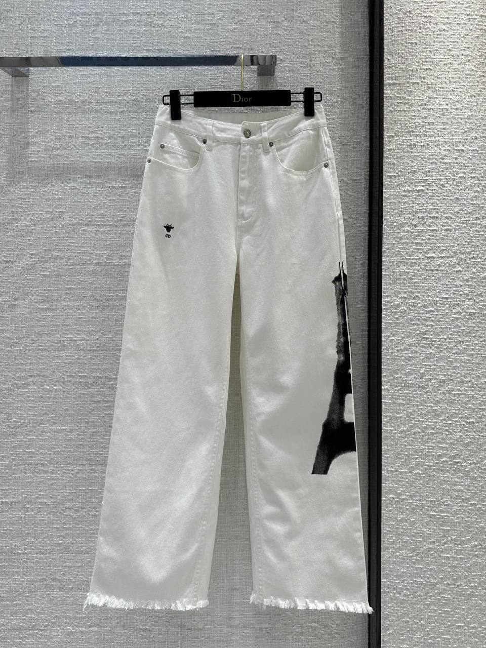 Джинсы Christian Dior LUX-105290 — это стильные белые джинсы прямого кроя. Они выполнены в классическом стиле с элегантными деталями, такими как принт с изображением Эйфелевой башни и фирменный логотип бренда. Идеальный выбор для создания модных и комфортных образов.