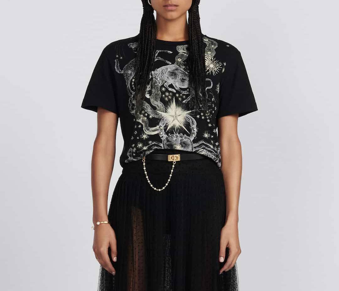 Футболка Christian Dior LUX-88719 представляет собой стильный предмет гардероба. Футболка выполнена в черном цвете с уникальным принтом, что делает ее отличным выбором для создания оригинальных образов. Этот предмет одежды идеально подойдет для повседневной носки, подчеркивая индивидуальность.