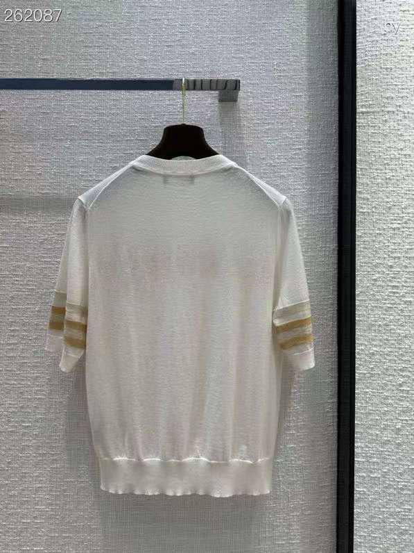Футболка Christian Dior LUX-103796 представляет собой стильный предмет гардероба. Футболка выполнена в светлых тонах с акцентом на горизонтальные полосы и звезду. Идеальна для создания повседневных образов, сочетая в себе комфорт и элегантность.