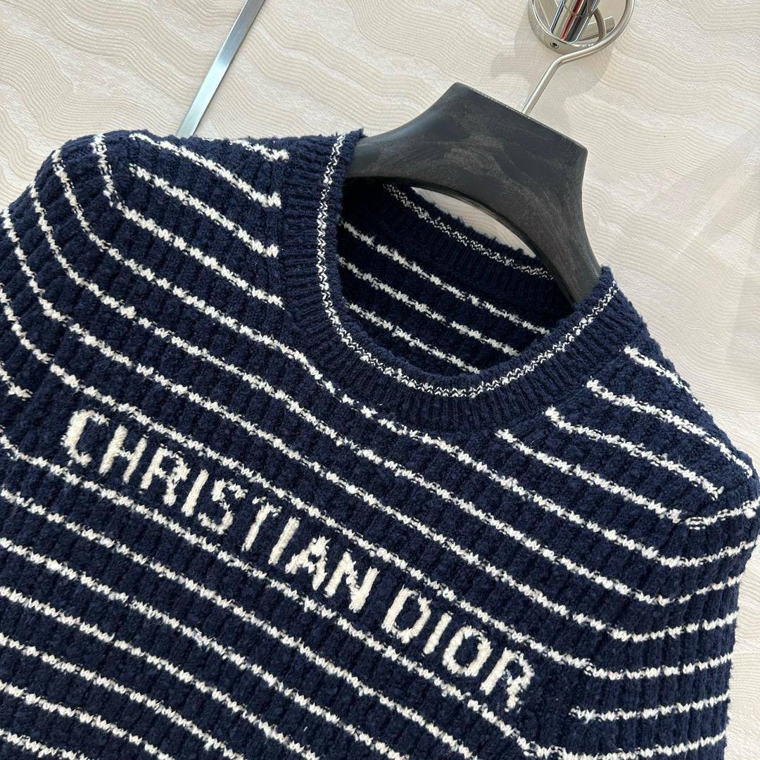 Футболка Christian Dior LUX-113907 представляет собой стильный элемент гардероба в полосатом дизайне. Она выполнена в темно-синем цвете с белыми полосами, что придает ей морской стиль. Эта футболка подойдет для повседневной носки, создавая эффектный образ.