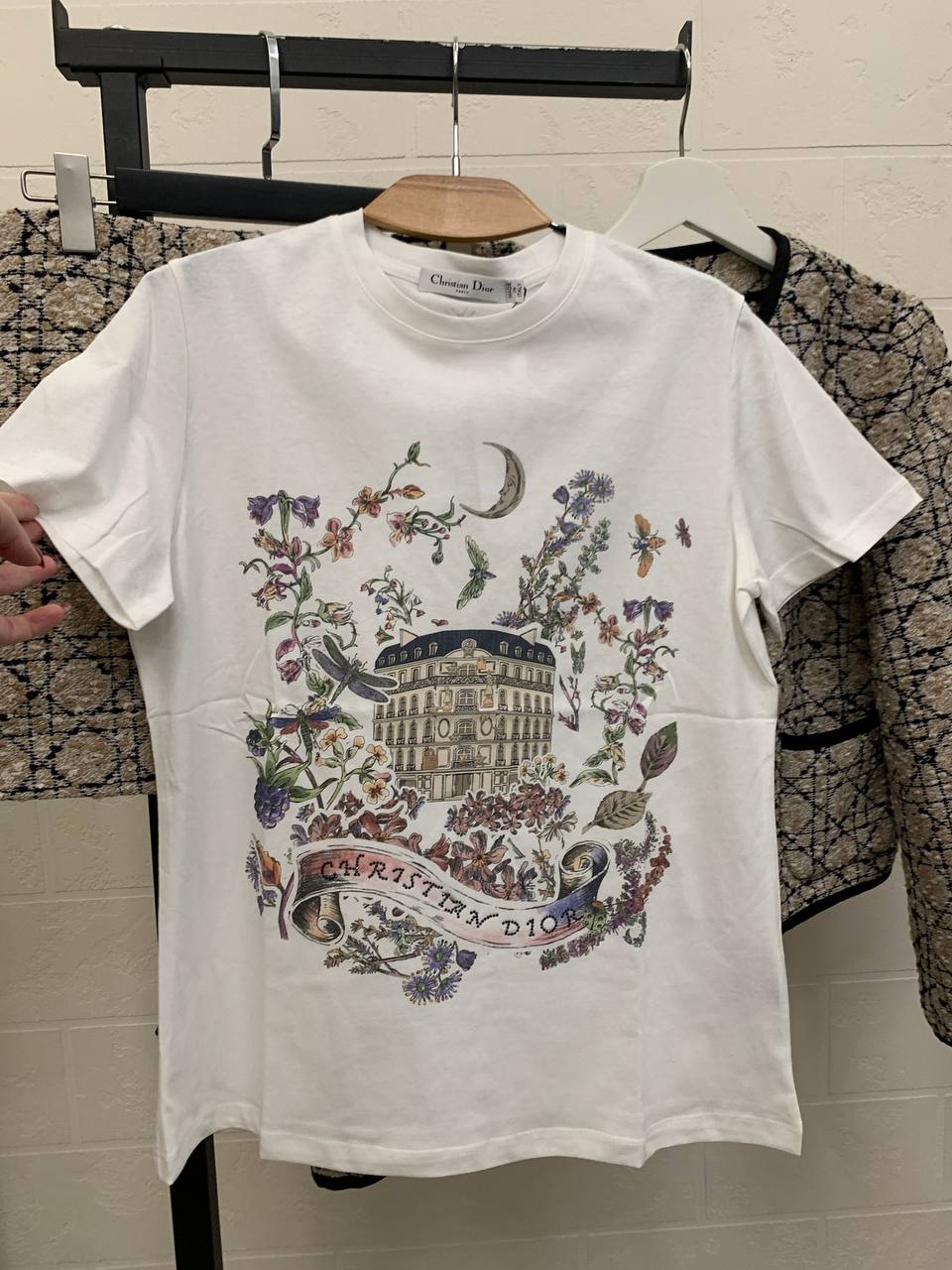 Футболка Christian Dior LUX-114450 — это стильный элемент гардероба, сочетающий в себе элегантность и комфорт. Белый цвет футболки и оригинальный принт делают ее ярким акцентом в любом образе, а мягкий материал обеспечивает удобство при носке. Такая футболка подойдет для повседневной носки, добавляя изысканности вашему стилю.
