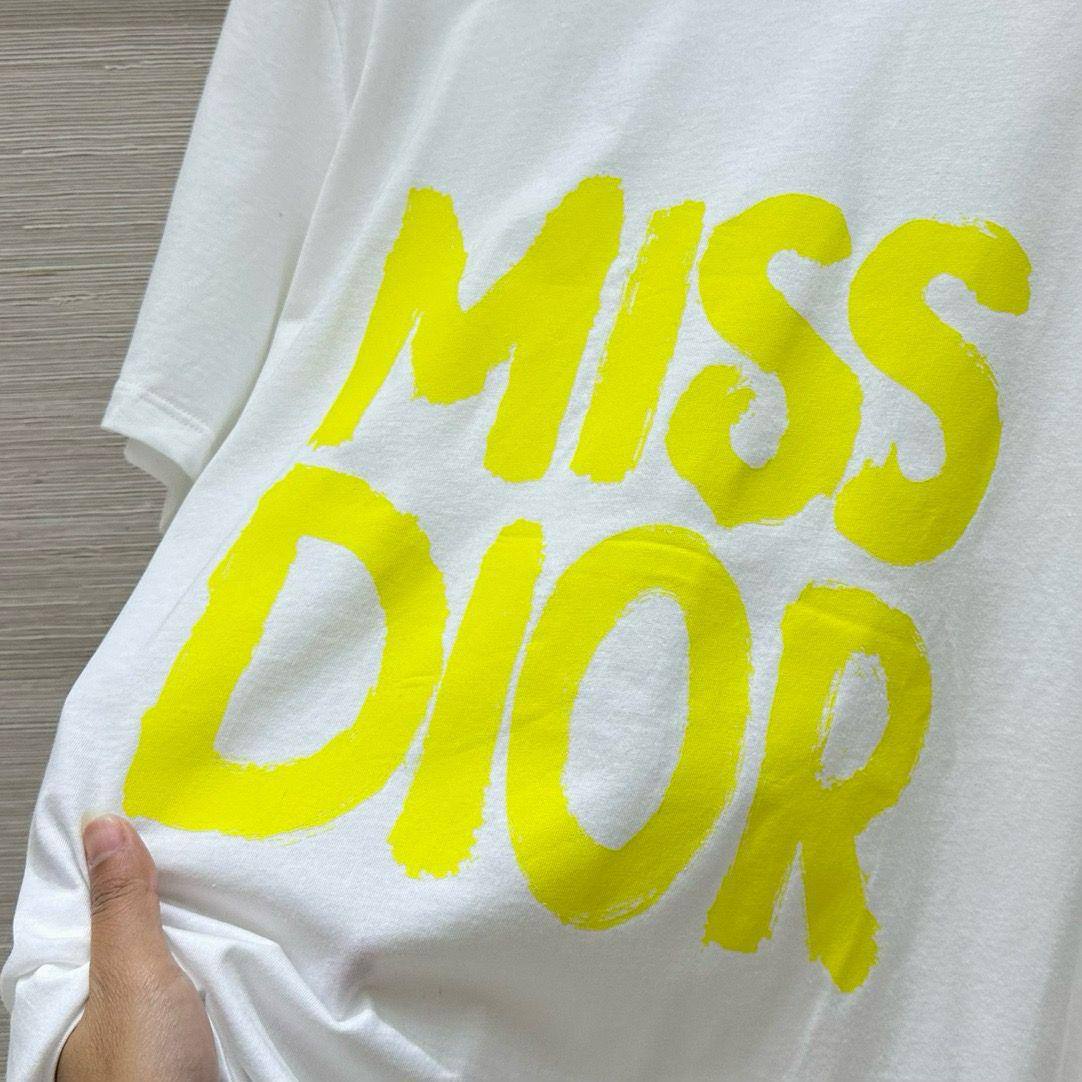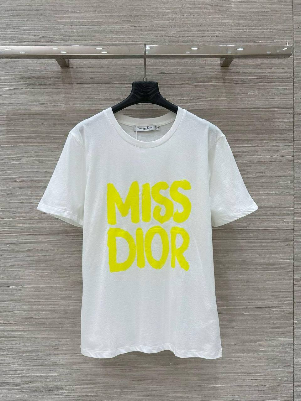 Футболка Christian Dior LUX-115763 — это стильный предмет гардероба, сочетающий в себе элегантность и современность. Белая футболка с ярким неоновым принтом "MISS DIOR" выделяется своим дизайном. Идеально подходит для создания модных образов в повседневной жизни.