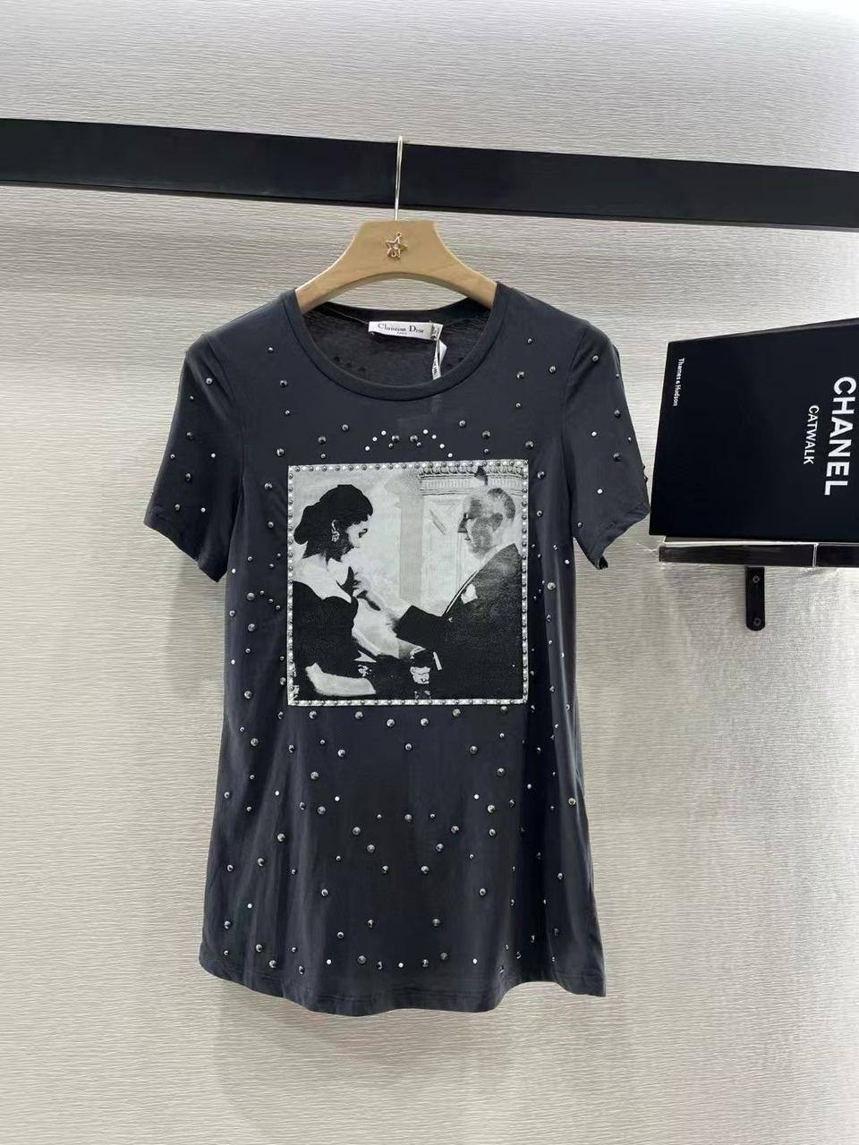 Футболка Christian Dior LUX-116256 — это воплощение элегантности и стиля. Футболка выполнена в темном цвете, декорирована серебристыми элементами и принтом на груди. Она станет отличным выбором для создания стильного и запоминающегося образа.