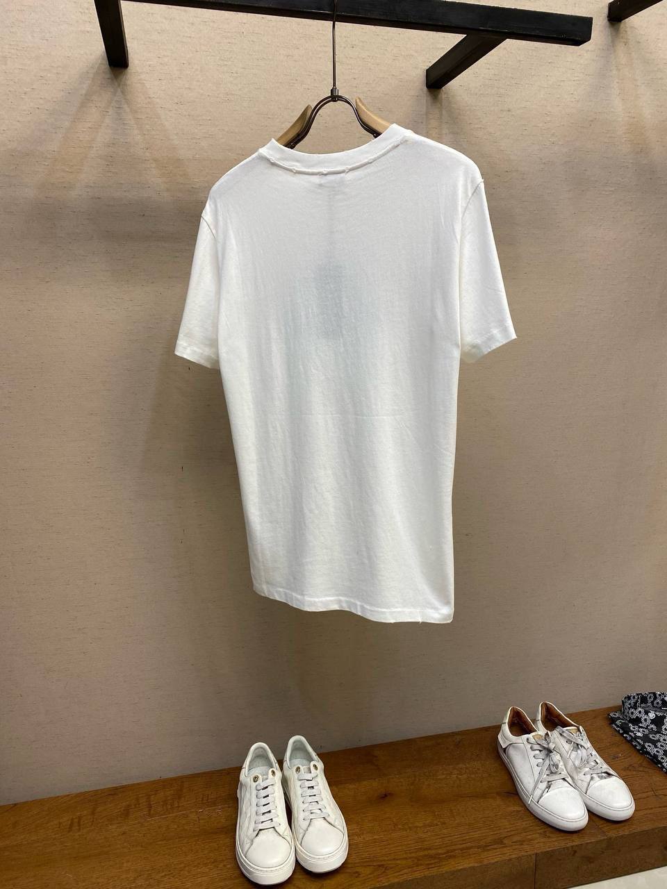 Футболка Christian Dior LUX-117041 – это стильная базовая вещь в гардеробе. Футболка белого цвета с надписью синего цвета. Отлично подойдёт для создания повседневных образов.