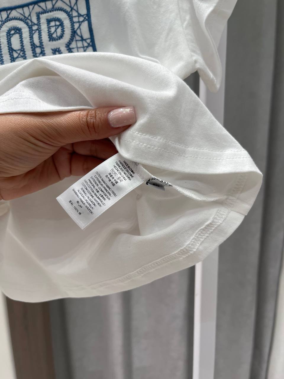 Футболка Christian Dior LUX-120027, представленная на изображении, выполнена в классическом стиле с узнаваемым логотипом бренда. Она имеет белый цвет, что делает её универсальным элементом гардероба. Футболка предназначена для повседневной носки.