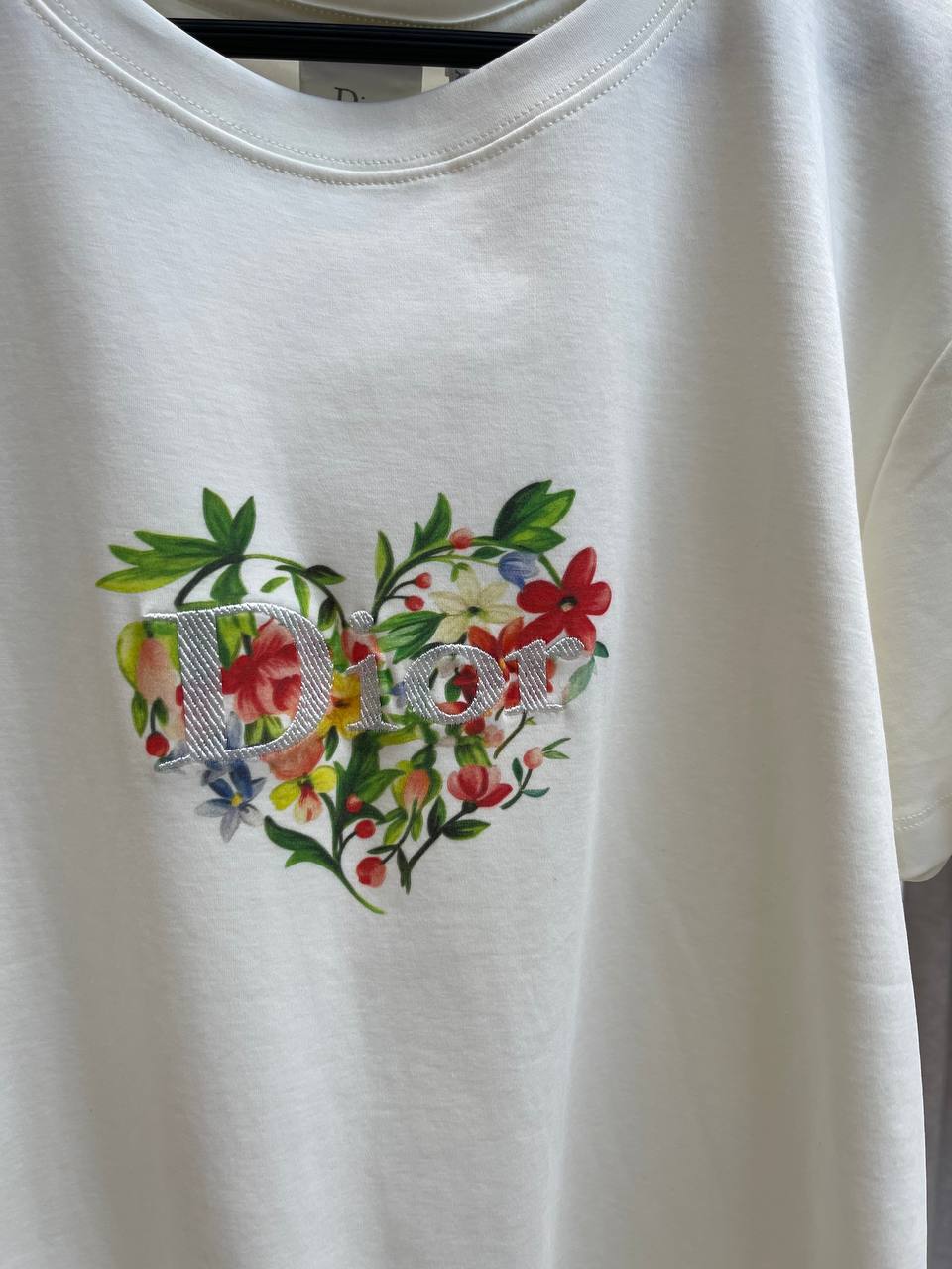 Футболка Christian Dior - это стильный и утонченный предмет гардероба, сочетающий в себе элегантность и комфорт. Белый цвет и оригинальный цветочный принт делают её отличным выбором для создания модных образов.