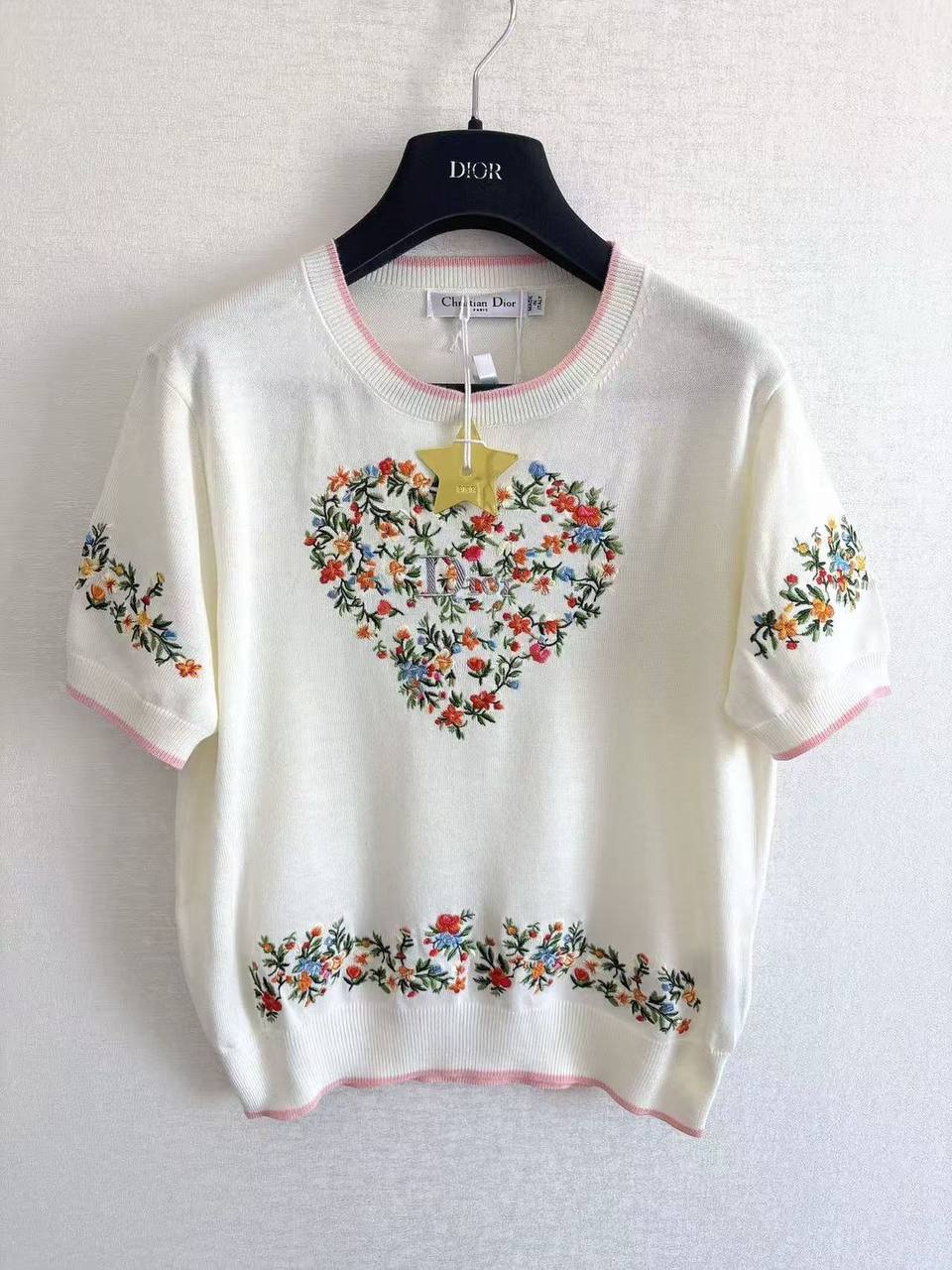 Представляем вам элегантную женскую футболку от Christian Dior, украшенную нежным цветочным узором. Эта модель станет прекрасным дополнением к вашему гардеробу, добавив нотку романтики и изысканности.