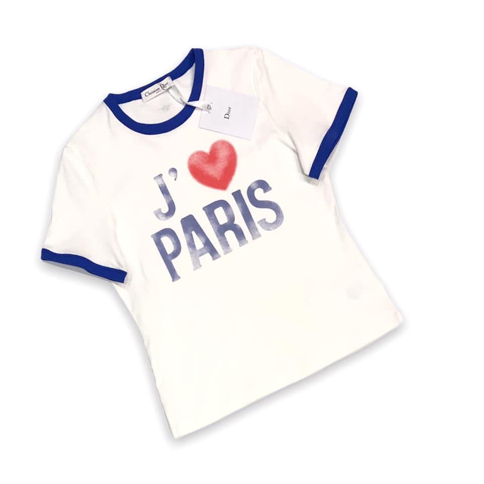 Футболка Christian Dior LUX-47554 — это стильная и модная вещь, выполненная в современном дизайне. Белый цвет футболки с контрастной синей отделкой на воротнике и манжетах придает ей элегантность. На передней части расположен принт "J`adore Paris" с изображением красного сердца, что подчеркивает ее французский шарм. Эта футболка идеально подойдет для создания как повседневных, так и более изысканных образов, отражая ваш индивидуальный стиль.