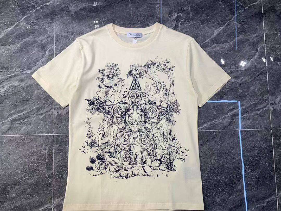 Эта футболка Christian Dior LUX-60923 представляет собой стильное и элегантное дополнение к гардеробу. Модель выполнена в кремовом оттенке и украшена оригинальным принтом в темно-синих тонах, сочетающим элементы природы и абстрактные узоры. Классический крой и высокое качество исполнения делают ее универсальной вещью, подходящей для создания как повседневных, так и более изысканных образов.