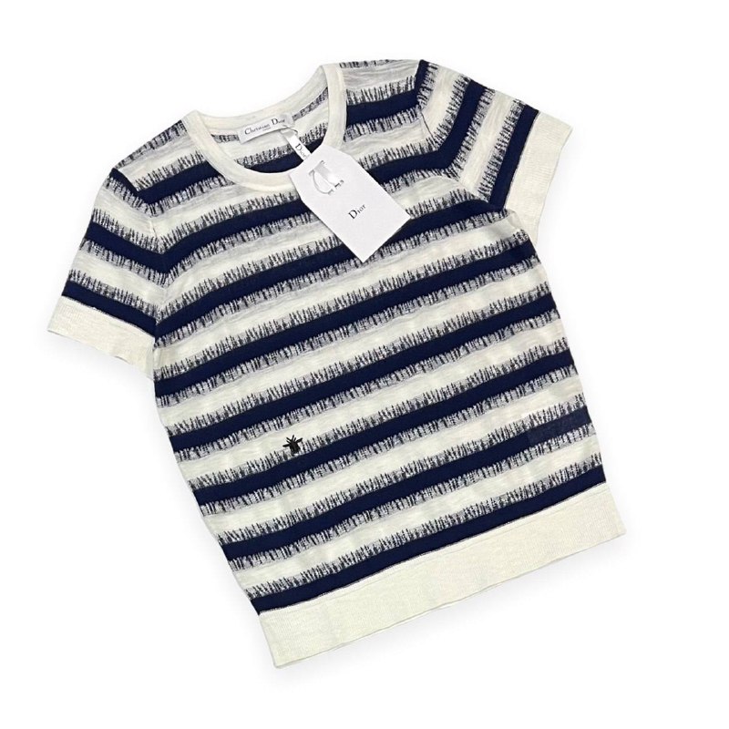 Футболка Christian Dior LUX-50733 представляет собой стильный элемент гардероба, выполненный в классическом морском стиле. Благодаря своему дизайну, она идеально впишется в повседневные образы, добавляя им изысканности и элегантности.