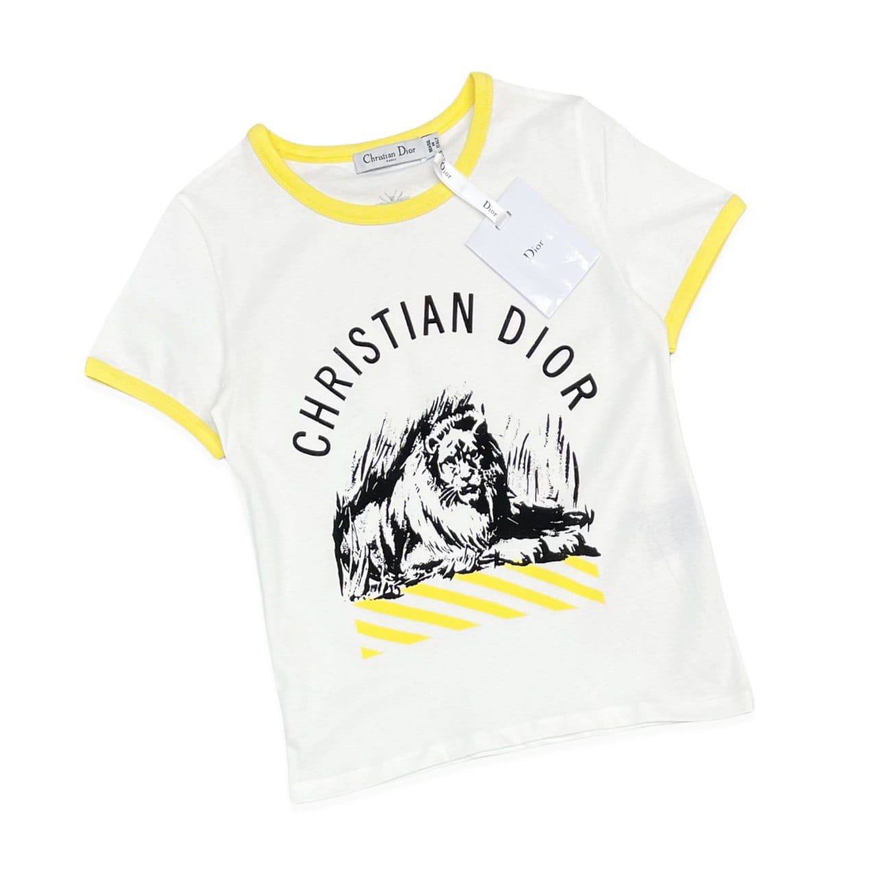 Представленная футболка Christian Dior LUX-66580 выполнена в классическом белом цвете с контрастной желтой отделкой по вороту и рукавам. Оригинальный принт с изображением льва и логотипа бренда добавляет изделию эксклюзивности и узнаваемости. Эта модель идеально подходит для создания стильных и комфортных образов на каждый день, подчеркивая ваш безупречный вкус.
