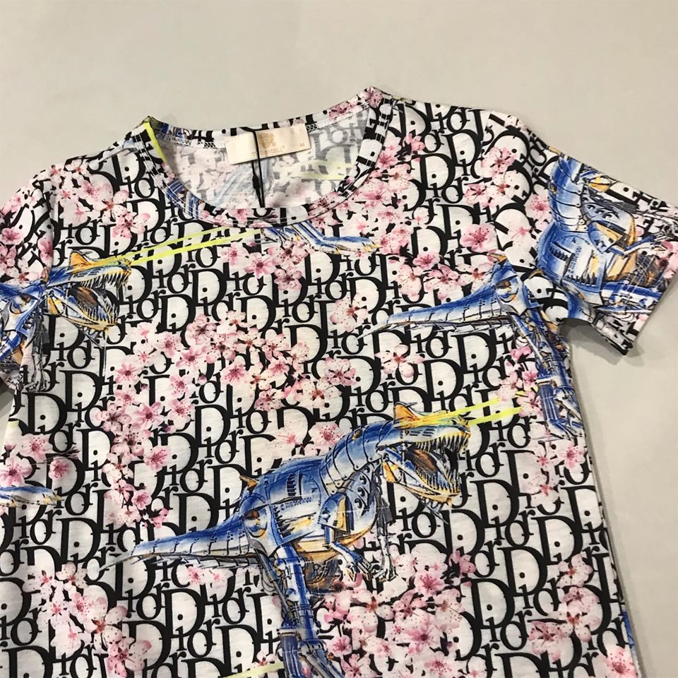 Детская футболка Christian Dior LUX-17712 представляет собой яркий и оригинальный предмет гардероба для юных модников. Футболка украшена фирменным принтом Christian Dior, дополненным изображением динозавров и нежными цветами сакуры, что придает ей уникальный и запоминающийся вид. Стиль футболки сочетает классический брендинг с фантазийными элементами, создавая образ, который понравится детям.