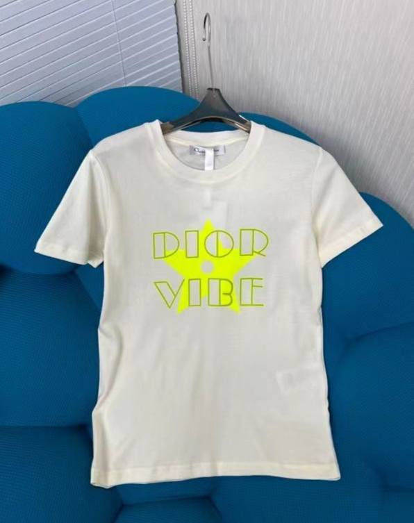Футболка женская Christian Dior LUX-68142 – это стильная и комфортная модель, выполненная в повседневном стиле. Дизайн футболки украшен оригинальным принтом "DIOR VIBE" ярко-желтого цвета, который придает ей уникальность и узнаваемость. Эта модель идеально подойдет для создания расслабленных и модных образов.