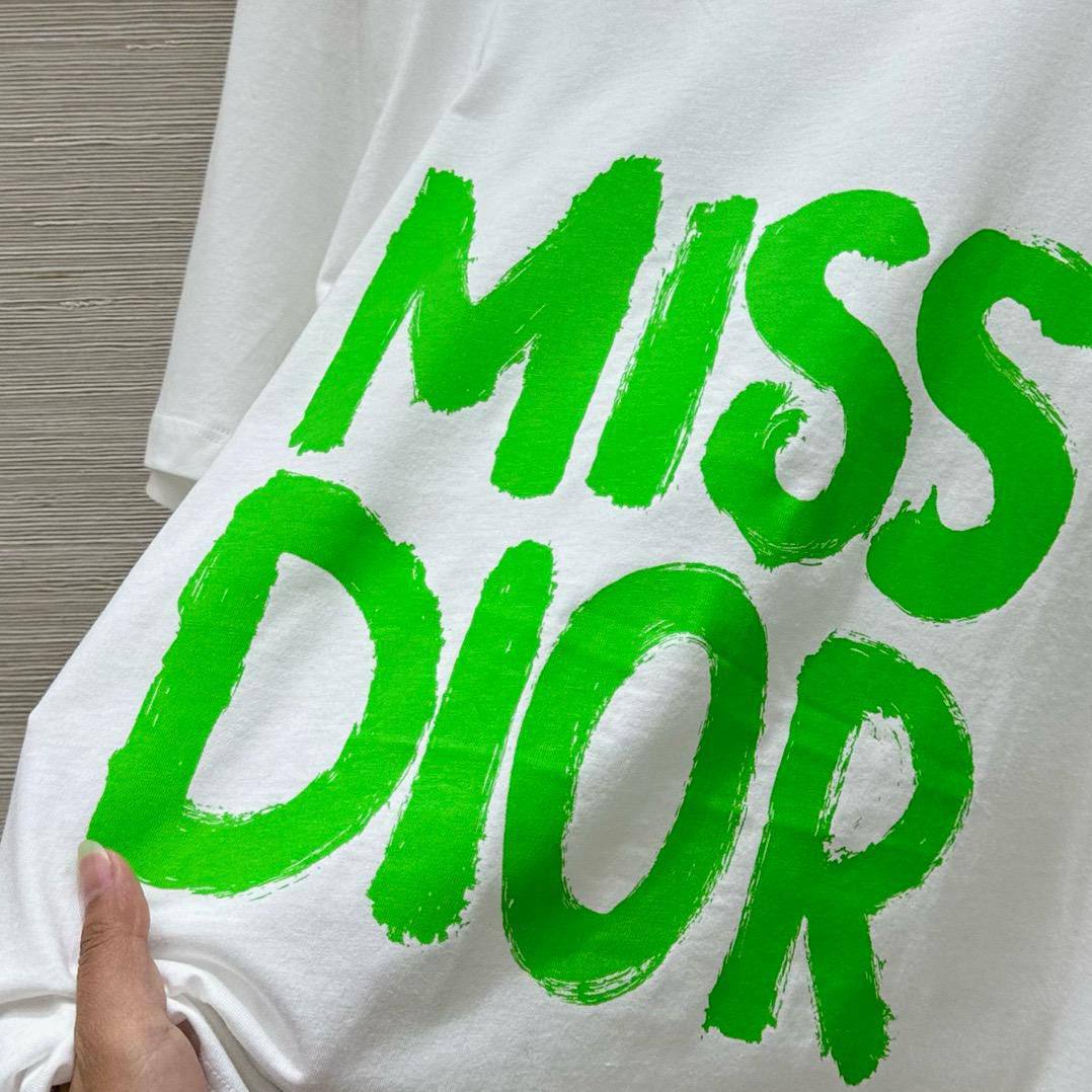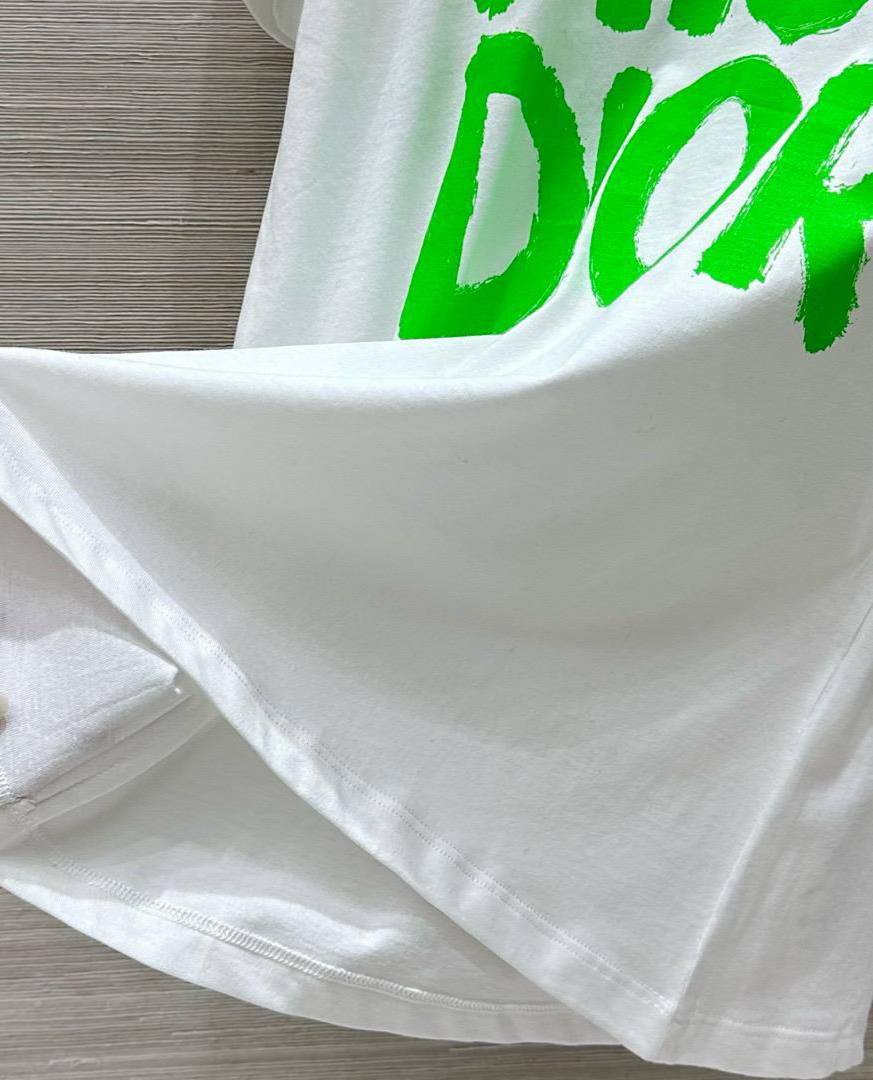 Футболка женская Christian Dior LUX-114674 — это стильный предмет гардероба от известного бренда. Футболка выполнена в белом цвете с ярким зеленым принтом "MISS DIOR", который добавляет образу выразительности. Она подходит для повседневной носки, легко сочетается с различной одеждой.