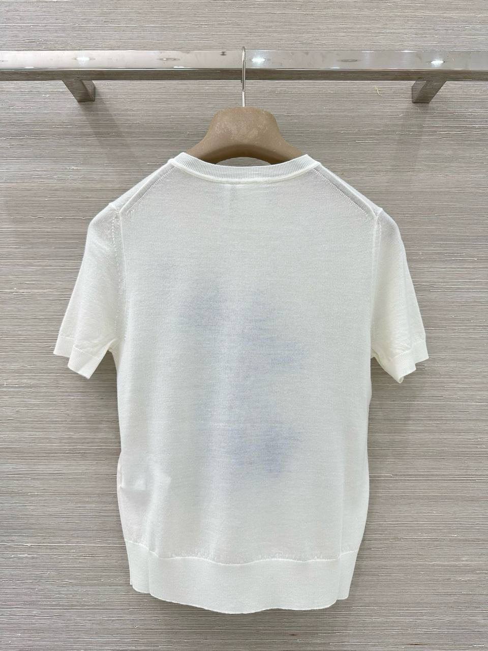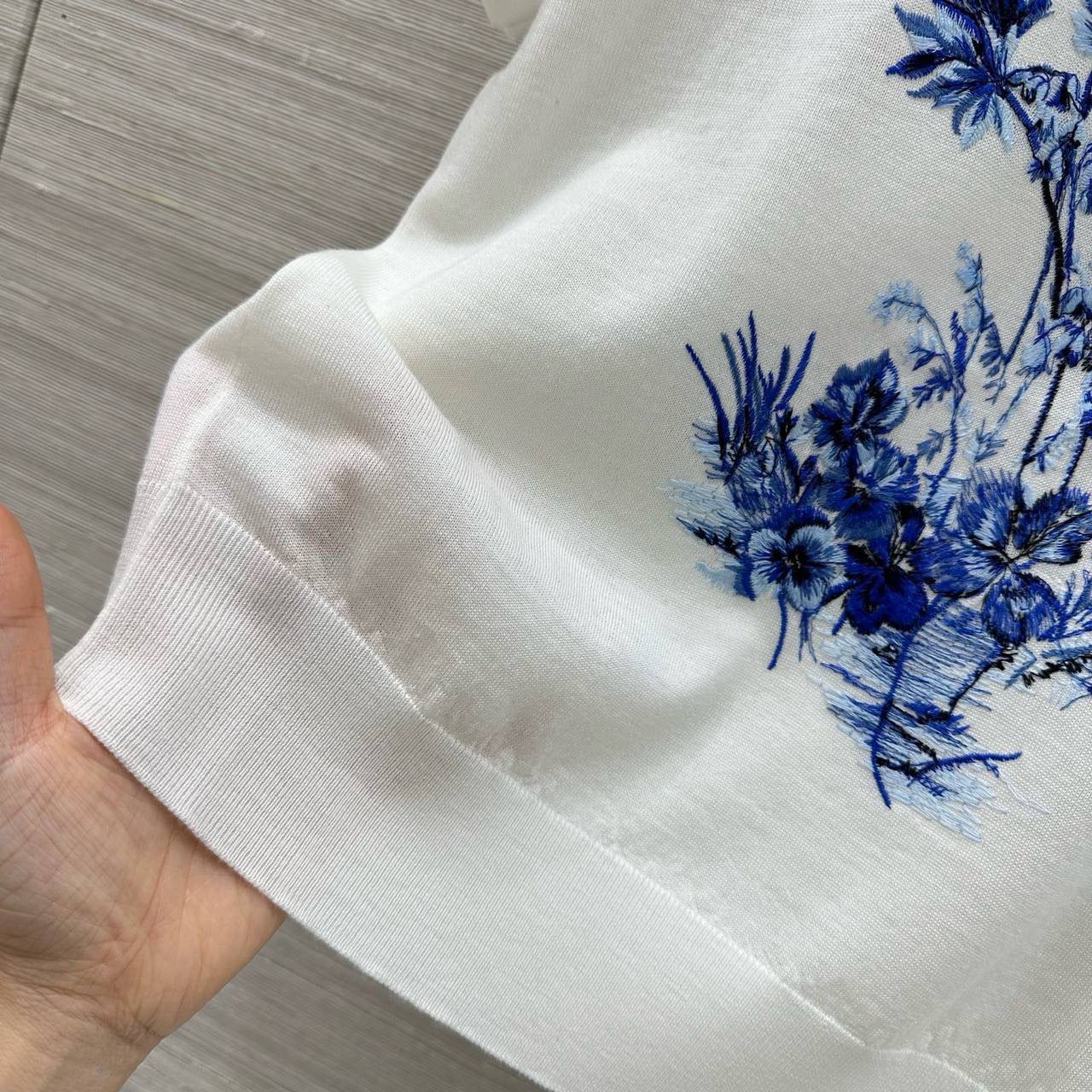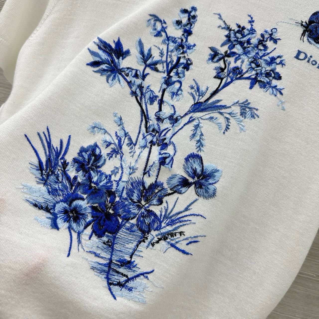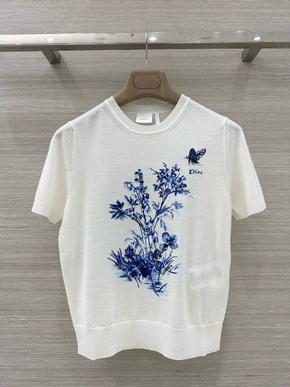 Женская футболка Christian Dior — это стильный и элегантный элемент гардероба, идеально подходящий для создания изысканных образов. Футболка отличается изящным дизайном с цветочным принтом и вышивкой в виде бабочки.