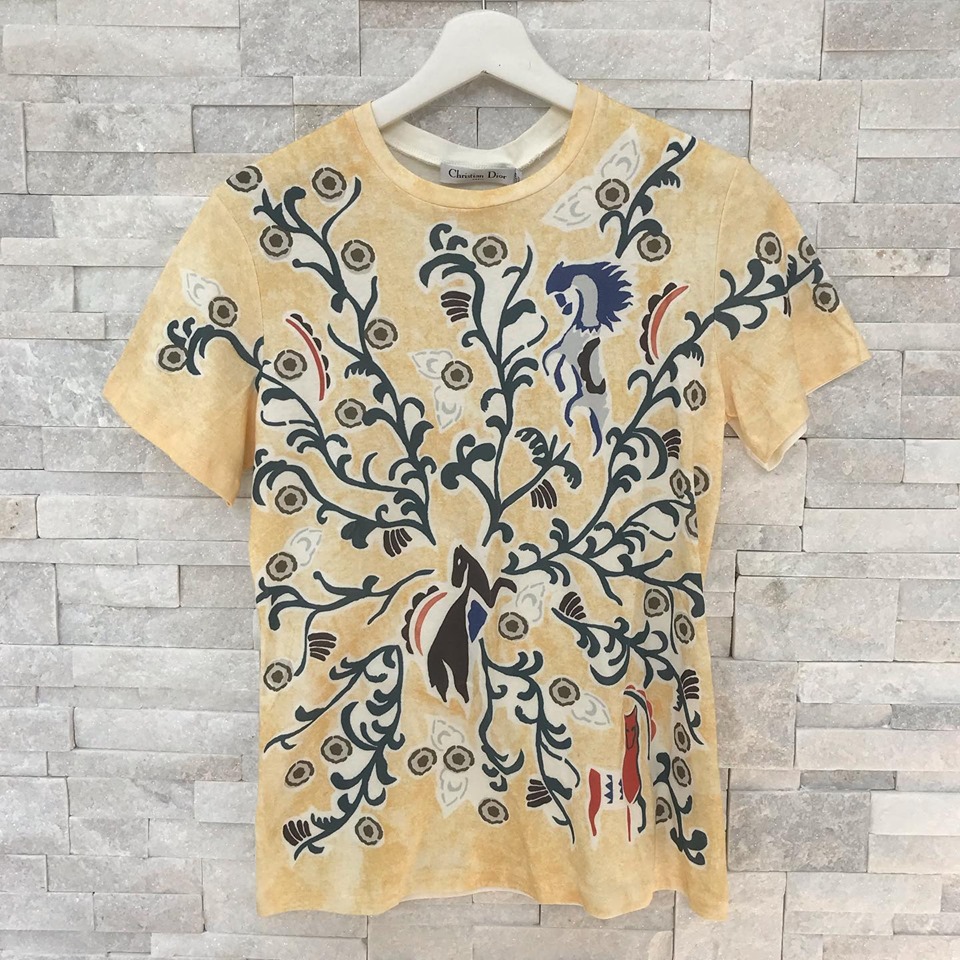 Эта футболка женская Christian Dior LUX-15125 отличается уникальным дизайном с ярким принтом, напоминающим старинные узоры. Модель идеально подходит для создания стильных и запоминающихся образов, добавляя изысканности в повседневный гардероб.