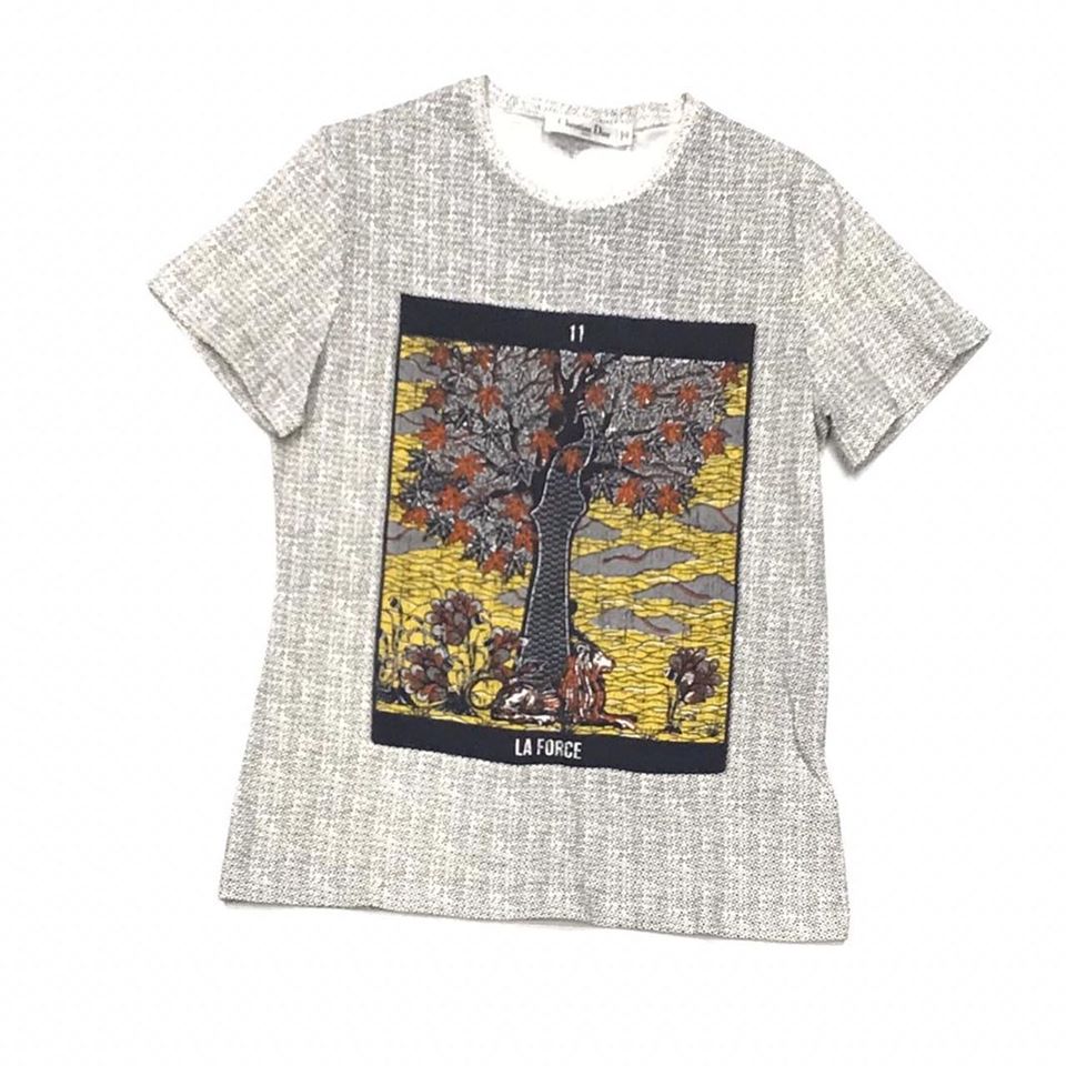Данная футболка женская Christian Dior LUX-25560 представляет собой стильное решение для современного гардероба. Ее дизайн сочетает классический крой с выразительным принтом, напоминающим карту Таро, что придает изделию уникальность и артистизм. Текстура ткани и детали принта создают элегантный и утонченный образ.
