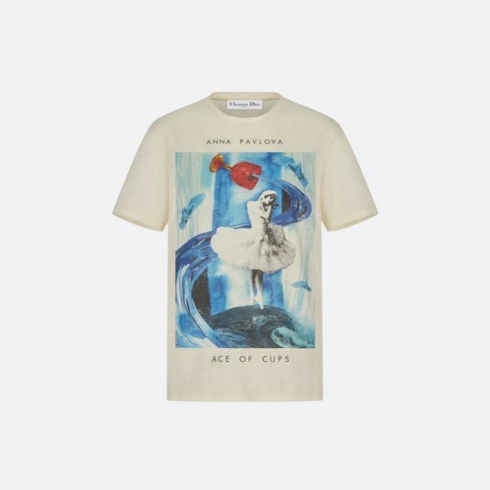 Эта футболка женская Christian Dior LUX-33161 – элегантное воплощение утонченного стиля и артистизма. Дизайн, вдохновленный образом балерины Анны Павловой и карточным тузом кубков, придает изделию уникальный характер. Классический крой и нейтральный цвет делают эту футболку универсальной базой для создания как повседневных, так и более изысканных образов.