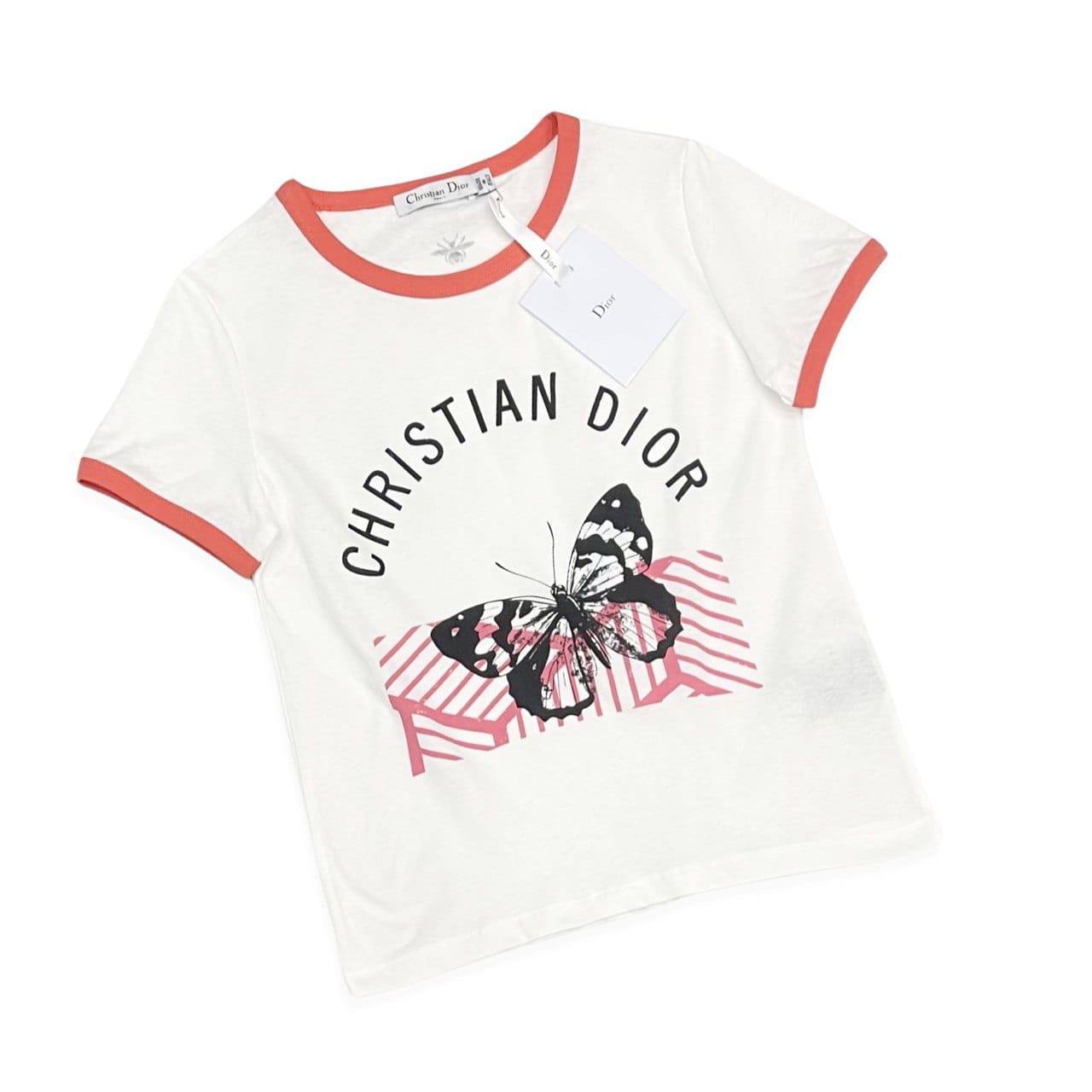 Футболка женская Christian Dior LUX-67041 представляет собой стильный и элегантный предмет гардероба. Она выполнена в классическом дизайне с ярким принтом бабочки и надписью "CHRISTIAN DIOR", что придает ей узнаваемый шарм. Эта модель отлично подойдет для создания как повседневных, так и более изысканных образов, подчеркивая вашу индивидуальность и хороший вкус.