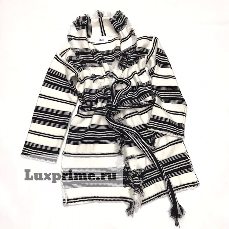Этот кардиган Christian Dior ОДЖ-951 в черно-белую полоску, выполненный в современном стиле, с декоративными бахромой и поясом, станет стильным дополнением к вашему гардеробу. Его универсальность позволяет сочетать его как с повседневными, так и с более элегантными образами, создавая расслабленный, но изысканный вид.