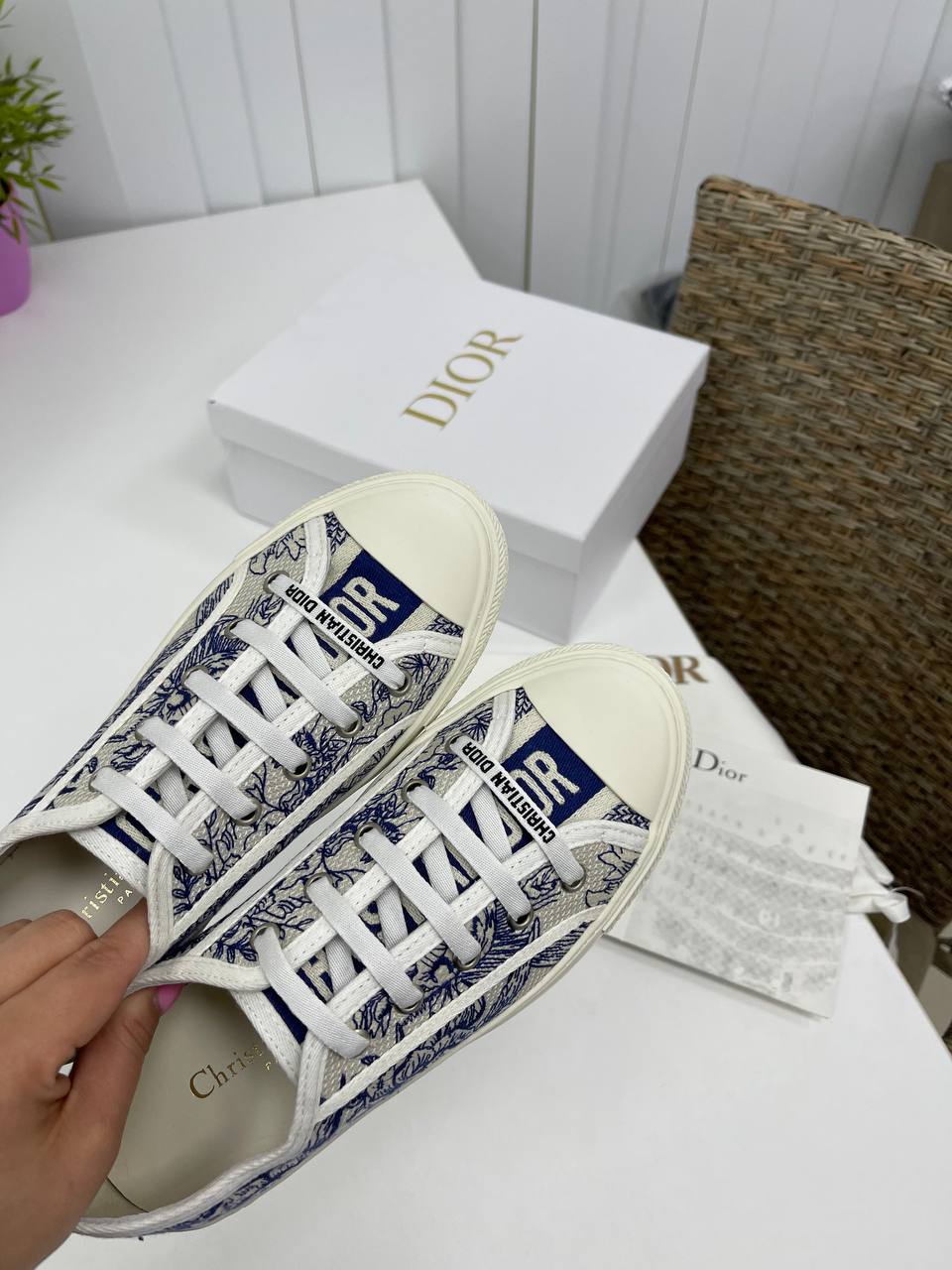 Кеды женские Christian Dior LUX-86084 – это стильная обувь для повседневного использования. Кеды выполнены в бело-синих тонах с цветочным принтом. Дизайн сочетает в себе элегантность и комфорт.