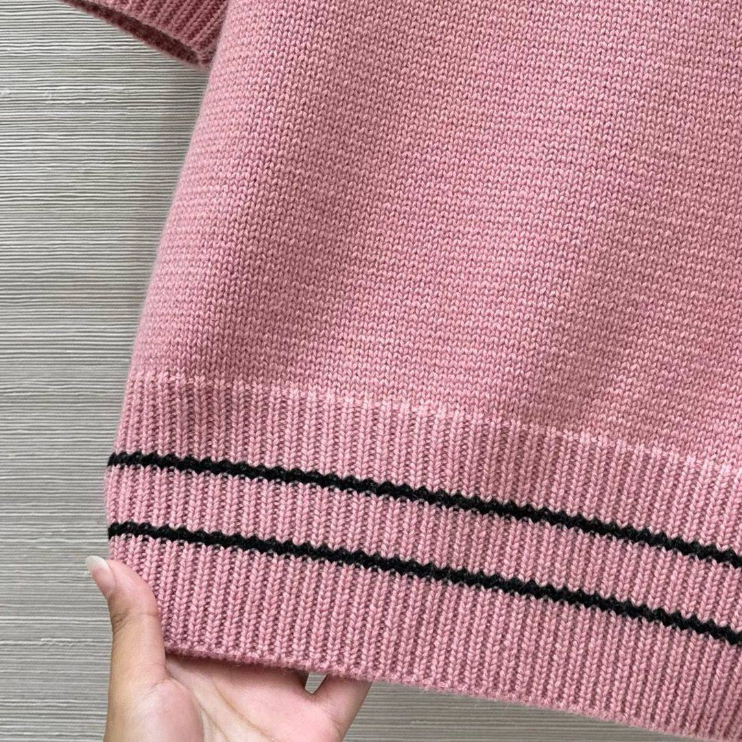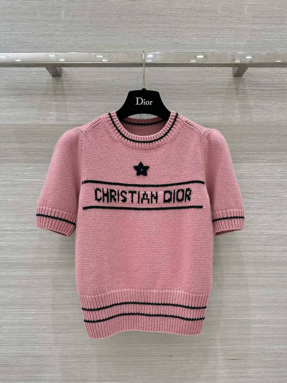 Кофта Christian Dior LUX-113893 представляет собой элегантный предмет гардероба, воплощающий в себе стиль и изысканность. Розовая кофта с короткими рукавами украшена черными деталями и надписью "CHRISTIAN DIOR". Текстура изделия выглядит приятной на ощупь. Подходит для создания как повседневных, так и более нарядных образов.