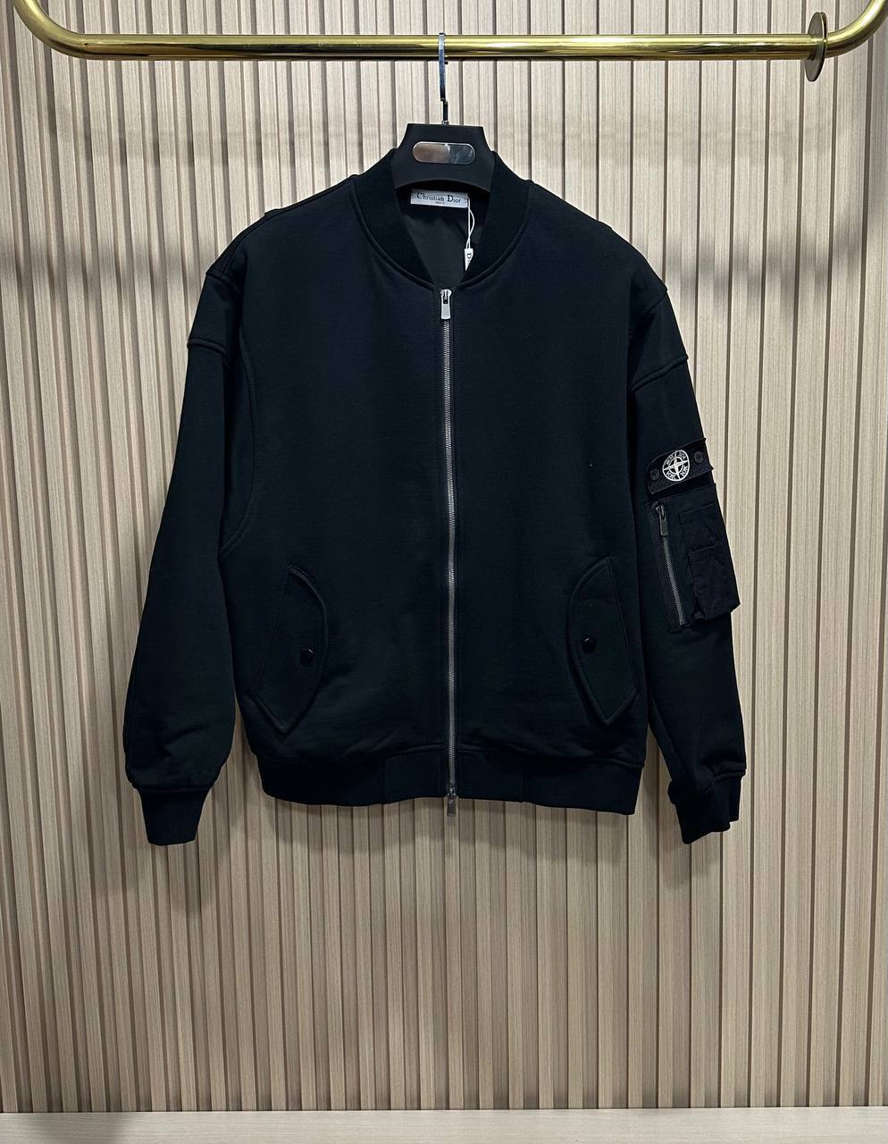 Кофта Christian Dior LUX-115645 — стильная кофта черного цвета в стиле casual, представленная в формате бомбера. Кофта выполнена в классическом черном цвете с текстурой, приятной на ощупь. Идеально подойдет для создания повседневных образов, сочетая в себе комфорт и узнаваемый стиль.