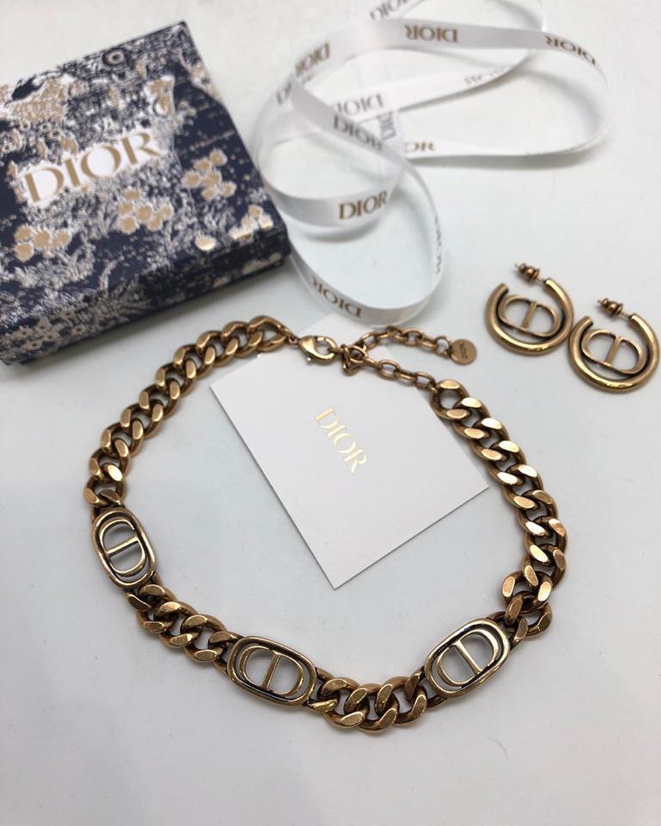 Колье Christian Dior LUX-35648 — это изысканное украшение, выполненное в стиле современного гламура. Это массивное золотистое колье-цепочка декорировано узнаваемым логотипом Dior CD, что придает ему элегантность и роскошь. Идеально подходит для создания эффектных вечерних или повседневных образов.