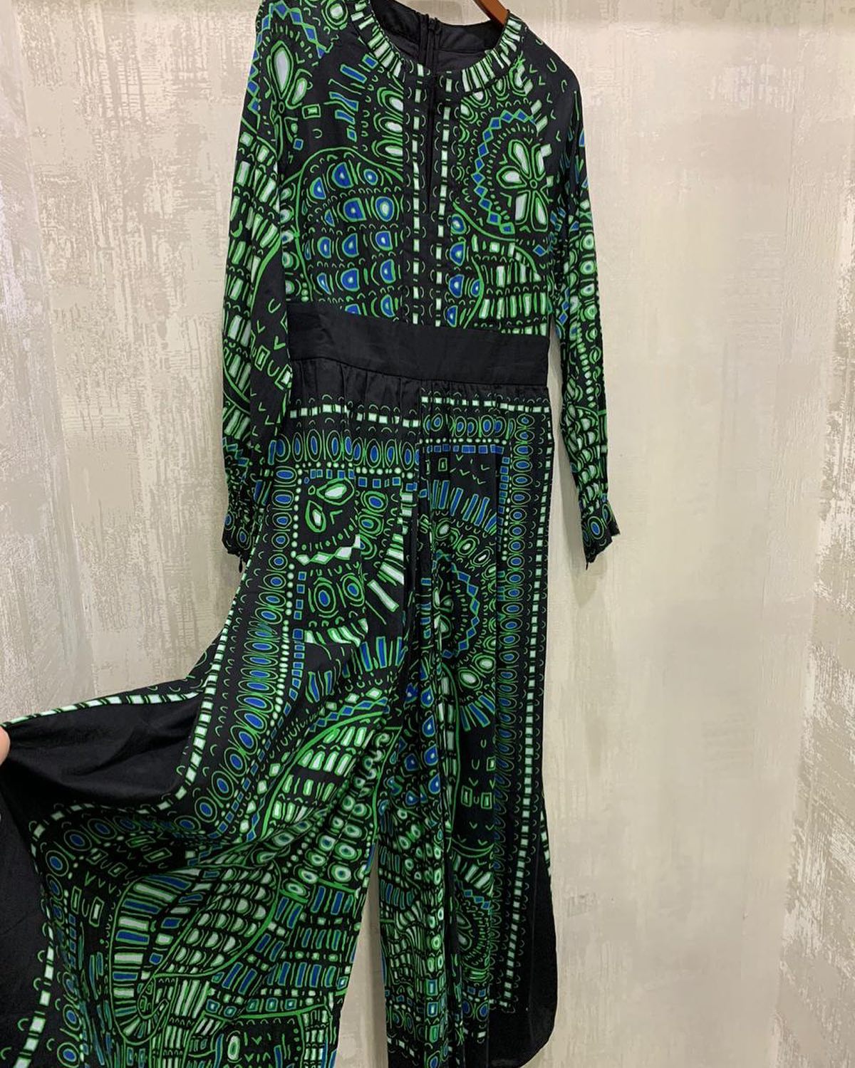 Этот комбинезон Christian Dior LUX-32872 представляет собой элегантное и стильное решение для современных женщин. Яркий геометрический узор в зеленых и синих тонах на черном фоне придает изделию выразительность и роскошный вид. Комбинезон идеально подходит для особых случаев, вечерних выходов или как акцентный элемент в повседневном образе, подчеркивая индивидуальность и изысканный вкус.
