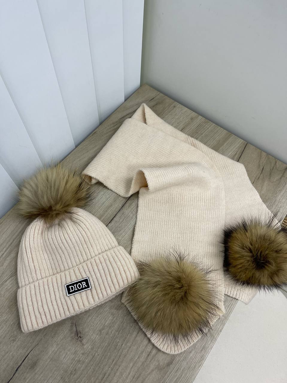 Комплект Christian Dior LUX-78847 - это элегантный зимний комплект, сочетающий в себе шапку и шарф. Шапка выполнена в классическом стиле с декоративной нашивкой Dior. Комплект выполнен в нейтральном оттенке, который идеально дополнит любой зимний образ.