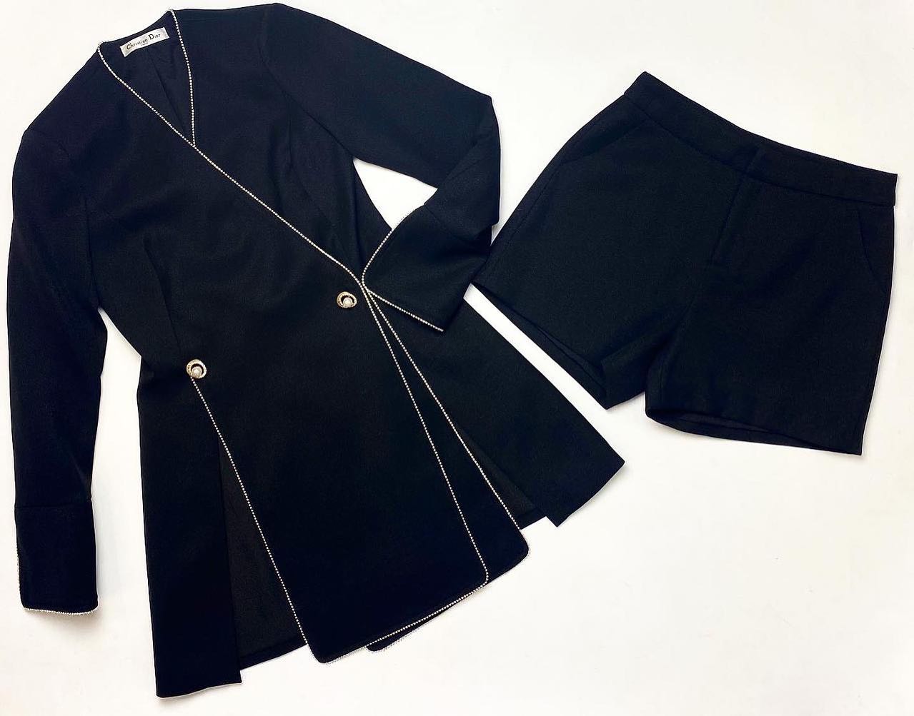 Этот элегантный костюм Christian Dior LUX-43696, состоящий из пиджака и шорт, выполнен в классическом черном цвете. Дизайн подчеркнут изящной отделкой из страз по краям изделия и на пуговицах, добавляя роскоши и изысканности. Костюм идеально подойдет для создания стильных и утонченных образов, сочетая в себе комфорт и модный тренд.