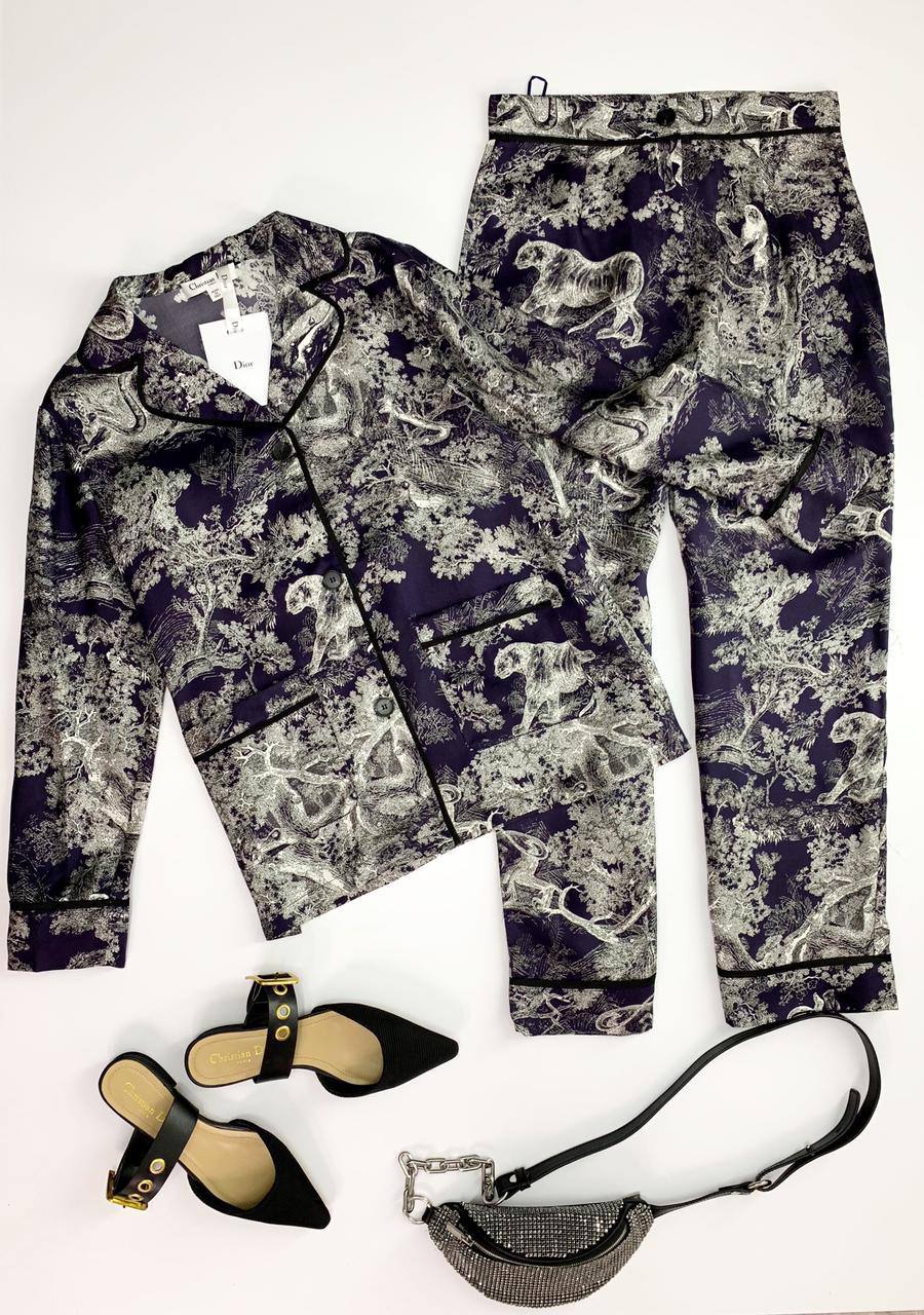 Christian Dior костюм LUX-51634 представляет собой элегантный комплект, выполненный в стиле casual. Он идеально подходит для дома, обеспечивая комфорт и стильный внешний вид. Оригинальный принт с изображением тигров и растительности придает изделию изысканность.