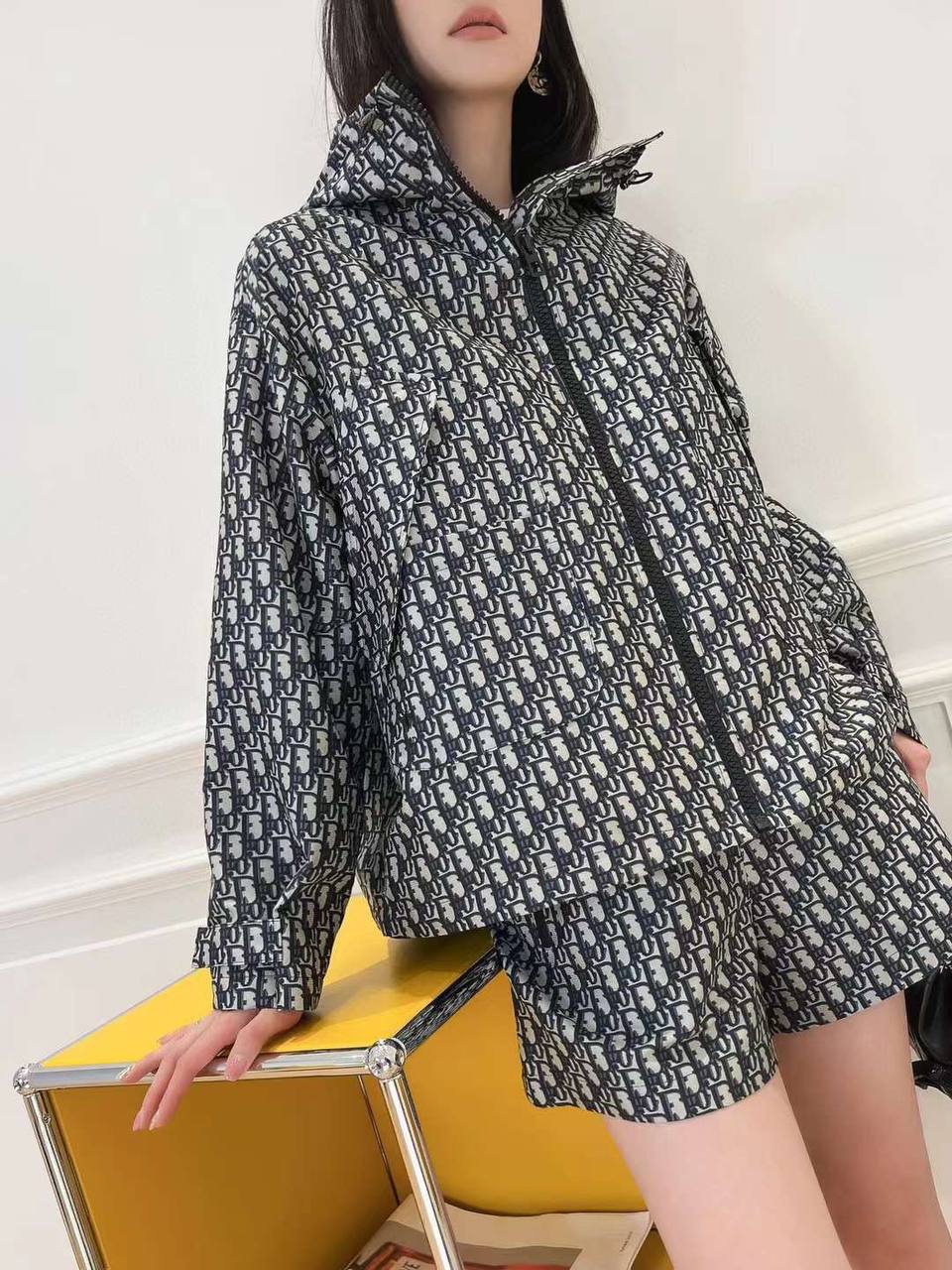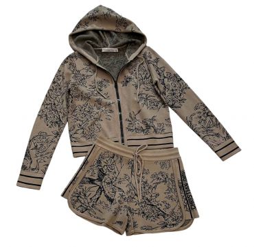 Костюм Christian Dior LUX-89524 - это стильный костюм, состоящий из куртки с капюшоном и шорт, выполненный в фирменном стиле модного дома. Комплект выполнен в темно-синем цвете с узнаваемым узором. Идеально подходит для создания ярких и запоминающихся образов.