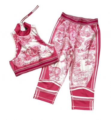Костюм Christian Dior LUX-87542 - это стильный комплект, состоящий из худи с капюшоном и шорт. Костюм выполнен в песочных тонах с черным цветочным принтом. Дизайн сочетает в себе спортивный стиль и элегантность, идеально подходит для повседневной носки.