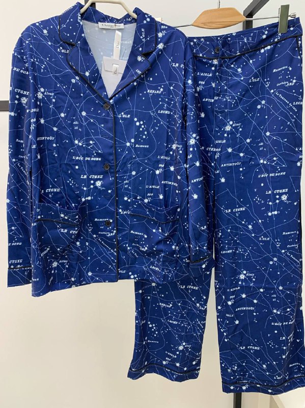 Костюм Christian Dior LUX-55494 – это изысканный комплект домашней одежды, выполненный в темно-синем цвете с уникальным принтом созвездий. Дизайн этого костюма вдохновлен астрономической тематикой, что придает ему особый шарм и элегантность. Классический крой пижамы с отложным воротником и брюками обеспечивает комфорт и свободу движений, делая его идеальным выбором для отдыха дома.