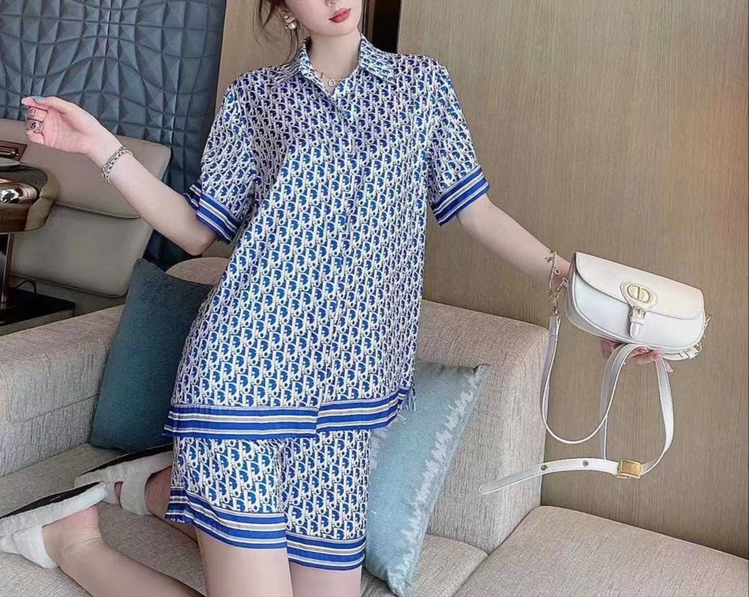 Костюм Christian Dior LUX-70538 - это стильный комплект, сочетающий в себе элегантность и комфорт. Костюм выполнен в бело-синем цвете с фирменным принтом бренда. Идеально подходит для создания расслабленных, но в то же время изысканных образов на каждый день.