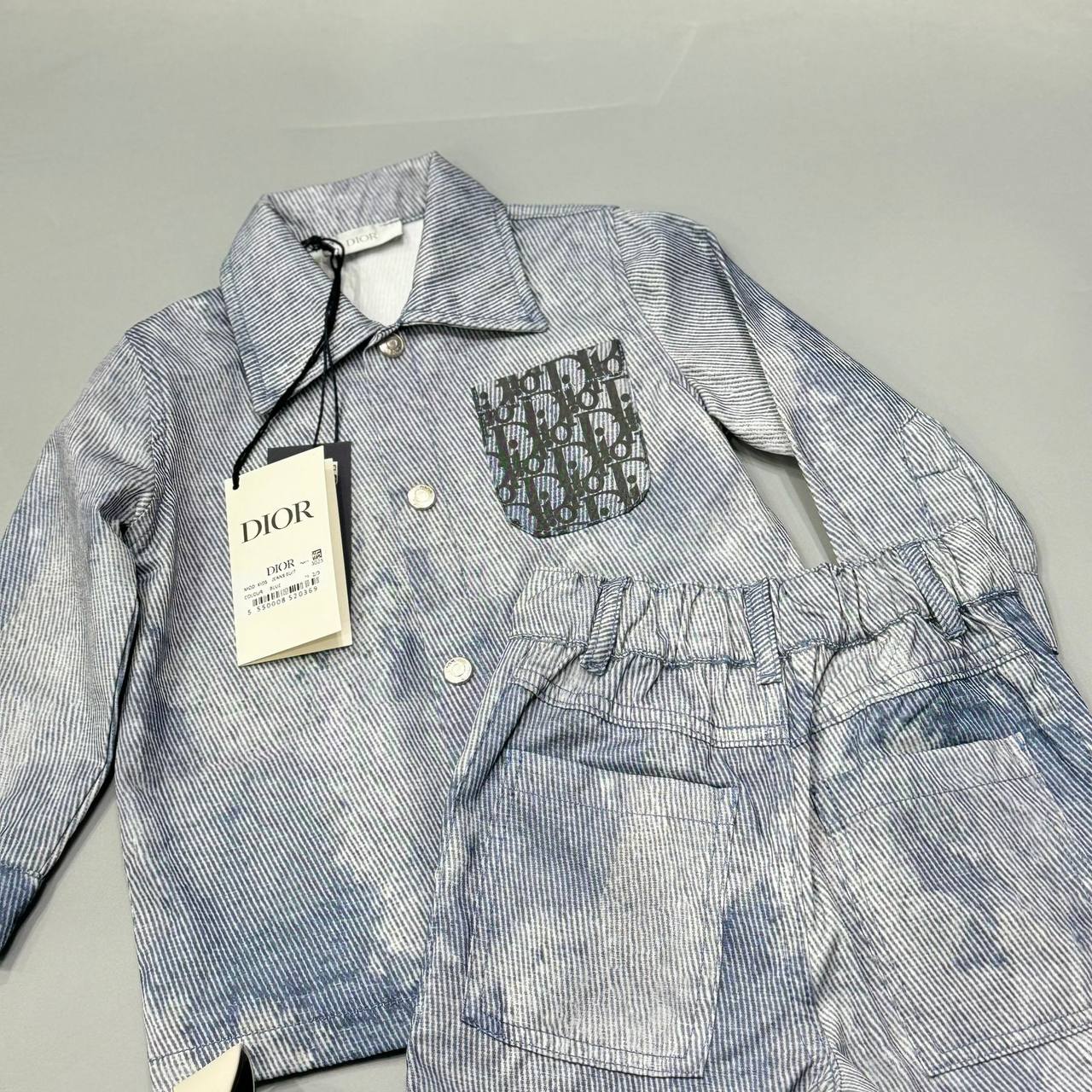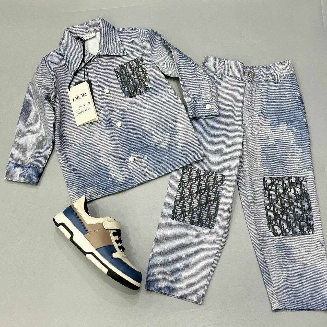 Костюм Christian Dior LUX-115011 — это стильный комплект для детей, сочетающий в себе современный дизайн и практичность. Комплект выполнен в светло-голубом цвете с текстурой, напоминающей джинсовую ткань. Дизайн костюма включает в себя узнаваемый логотип бренда.