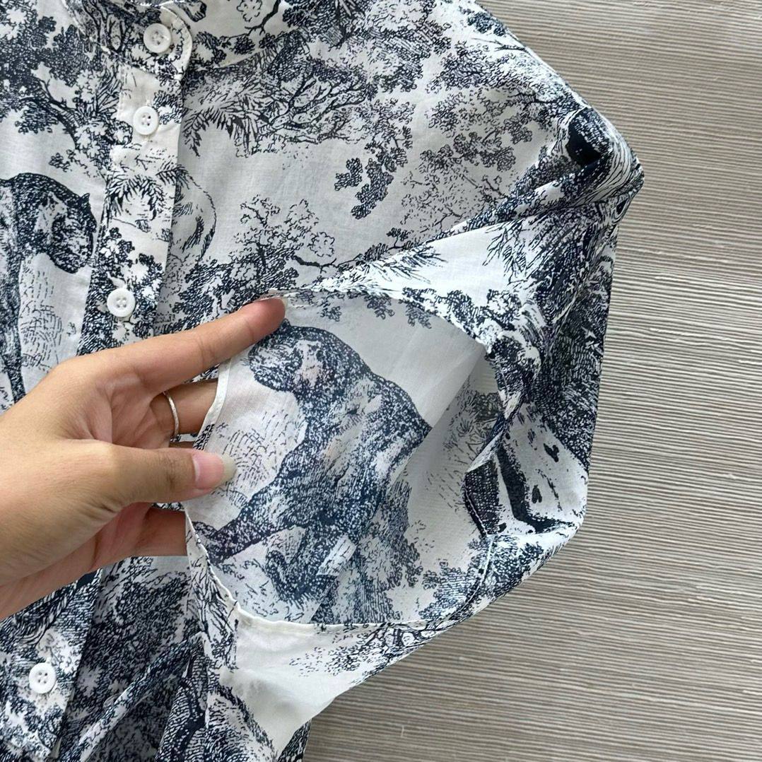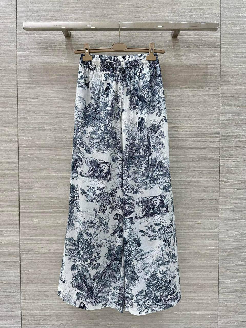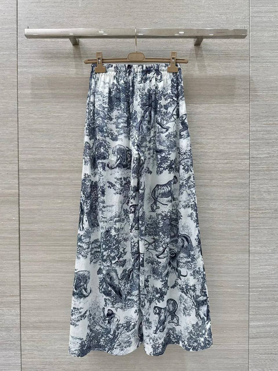 Christian Dior LUX-120960 - стильный костюм с оригинальным принтом, состоящий из блузы с коротким рукавом и широких брюк. Этот комплект отлично подойдет для создания модного и запоминающегося образа.