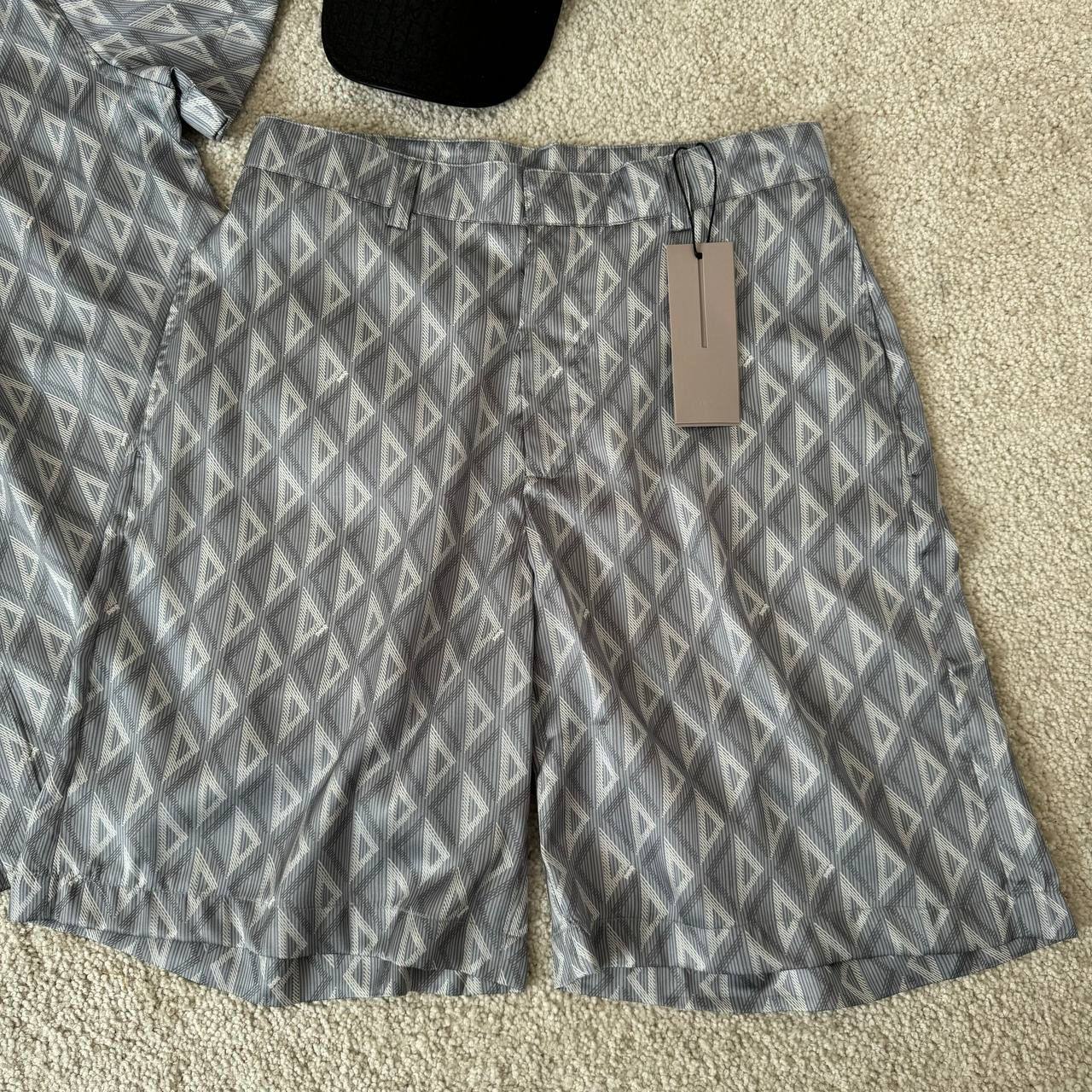 Мужской костюм Christian Dior LUX-106929 представляет собой летний комплект из рубашки с коротким рукавом и шорт, выполненных в серо-белой цветовой гамме с геометрическим узором. Этот костюм предназначен для создания стильных и комфортных образов в теплое время года.