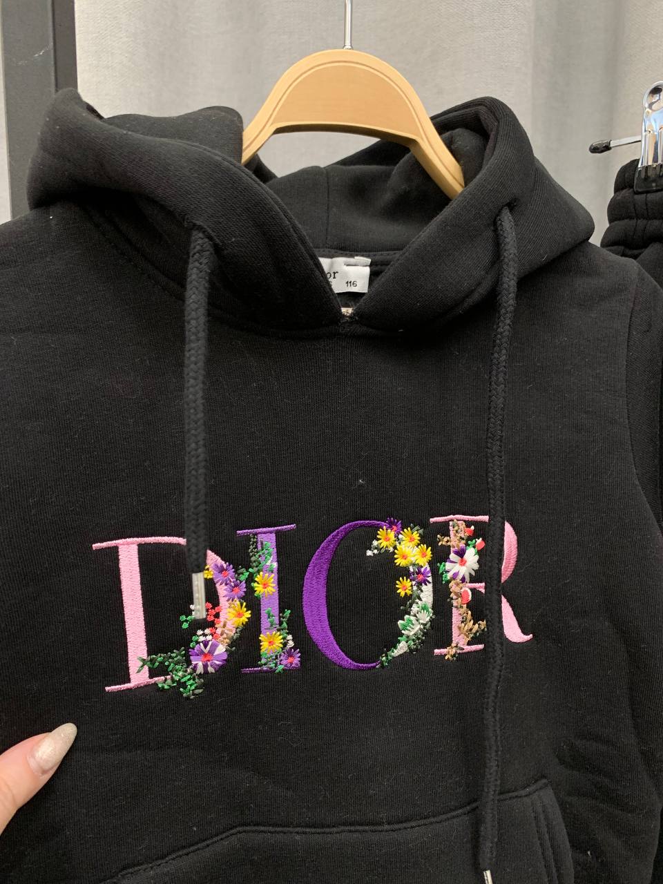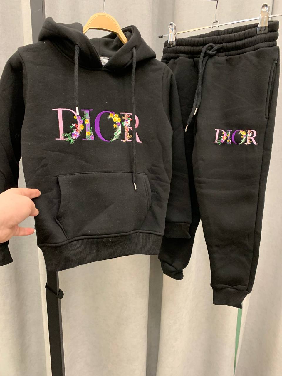 Костюм утеплённый Christian Dior LUX-101211 — это стильный и комфортный комплект для повседневной носки. Чёрный цвет и вышитый логотип Dior с цветочным узором делают его узнаваемым и модным. Идеально подходит для создания расслабленных образов.