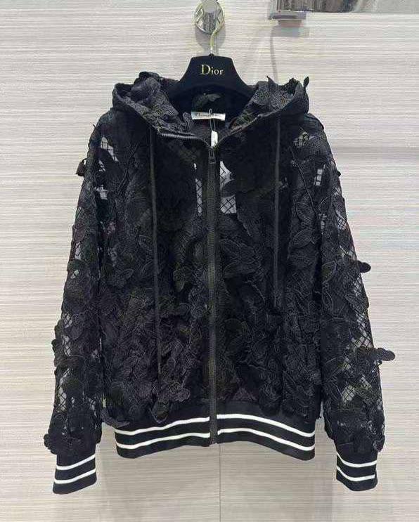 Костюм женский Christian Dior LUX-104746 - это элегантный костюм, сочетающий в себе куртку с капюшоном на молнии и шорты. Костюм выполнен в черном цвете и украшен кружевными элементами, придающими ему изысканный вид. Идеально подходит для создания стильного и запоминающегося образа.